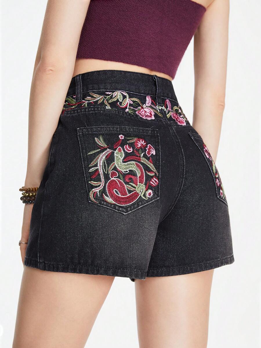 Hippie Shorts in jeans casual da donna per le vacanze, stile boho, ricamati
