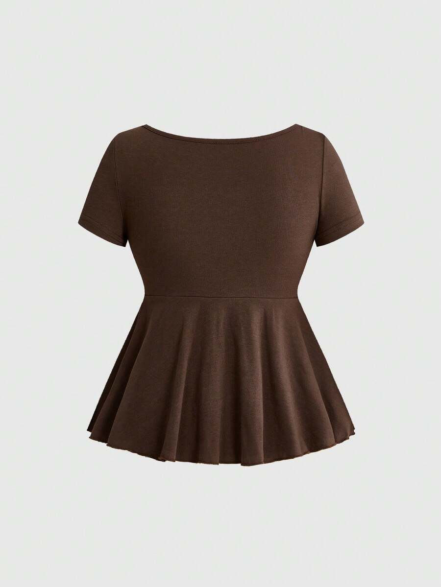 Maglietta a maniche corte con scollo quadrato, in stile hippie, con perline di legno e ricami, casual per l'estate