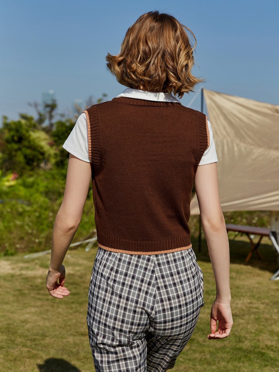 Gilet in maglia scavato bordo a contrasto senza maglietta