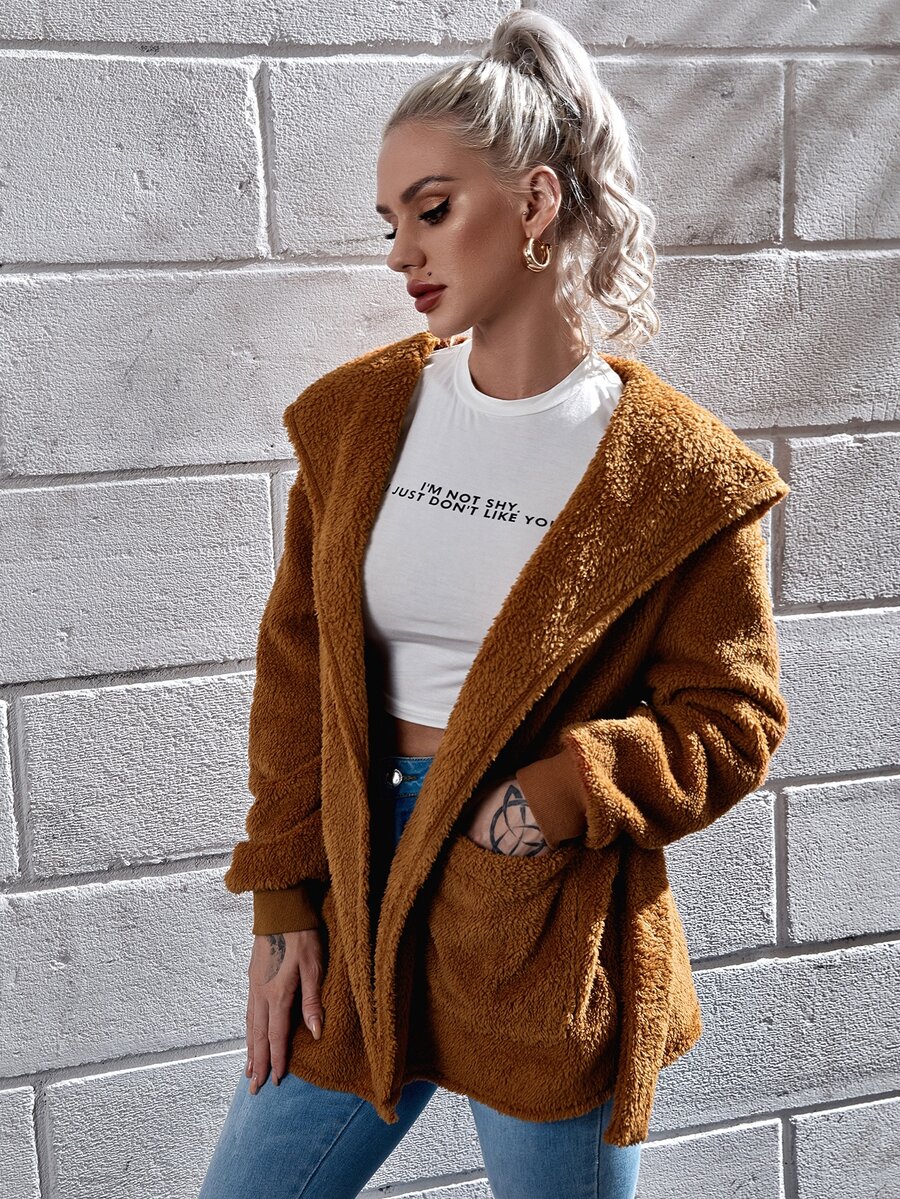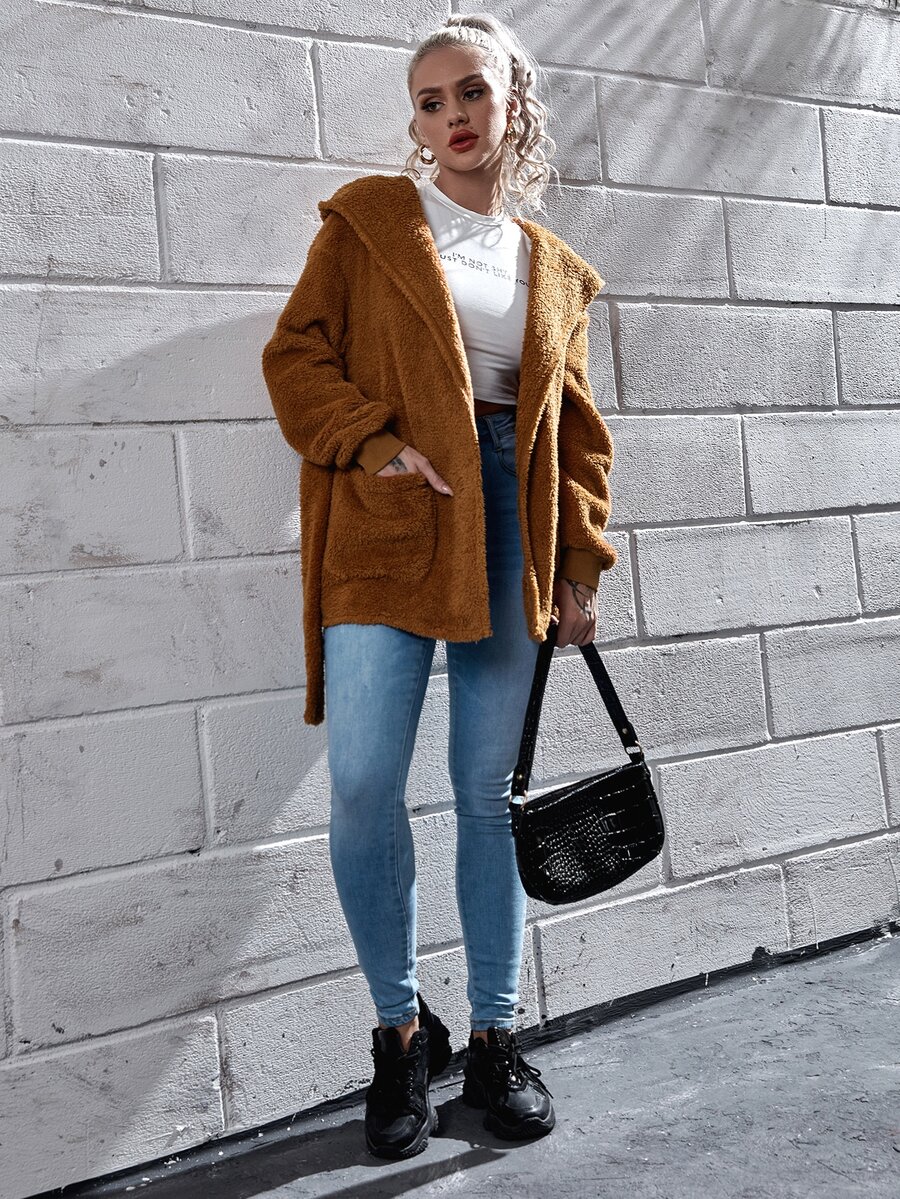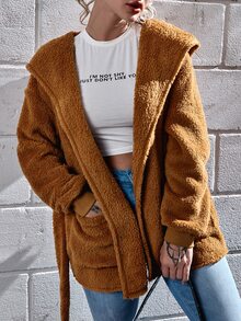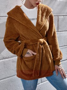Cappotto teddy con cintura e cappuccio