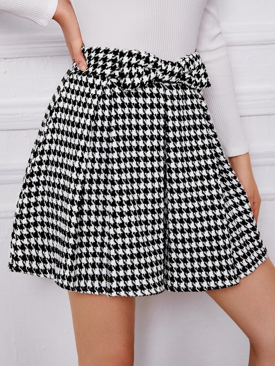Gonne pied de poule Fiocco frontale plissettato Tweed