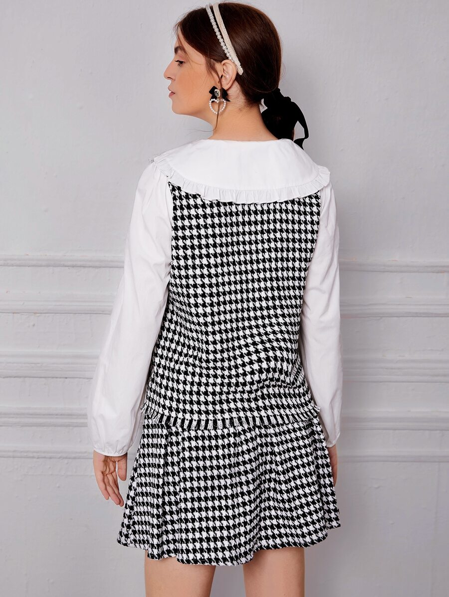 Camicetta 2 in 1 con stampa pied de poule con taglio