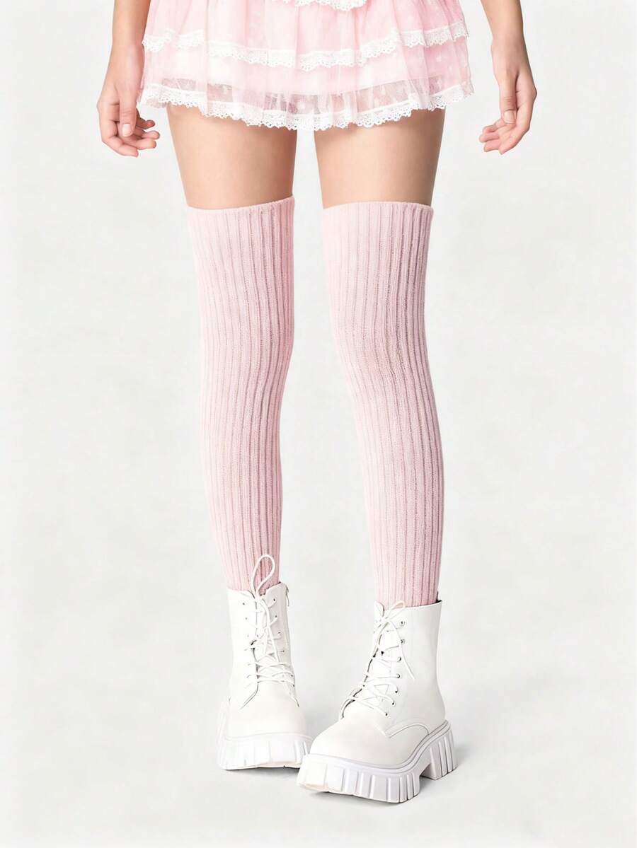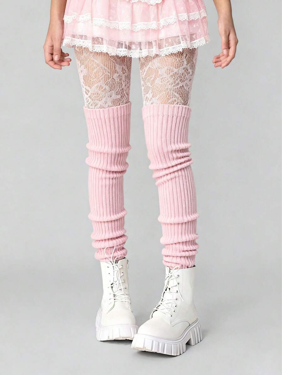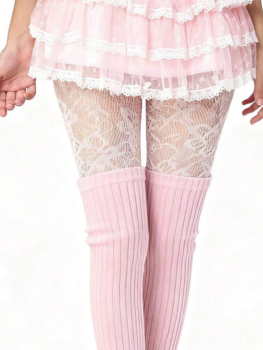 J-Fashion 1 paio di calze di alta qualità in pizzo francese vintage con motivo a rose per donna, 1 paio di scaldamuscoli rosa sopra il ginocchio, set versatile di calze e calzini adatto per tutte le stagioni