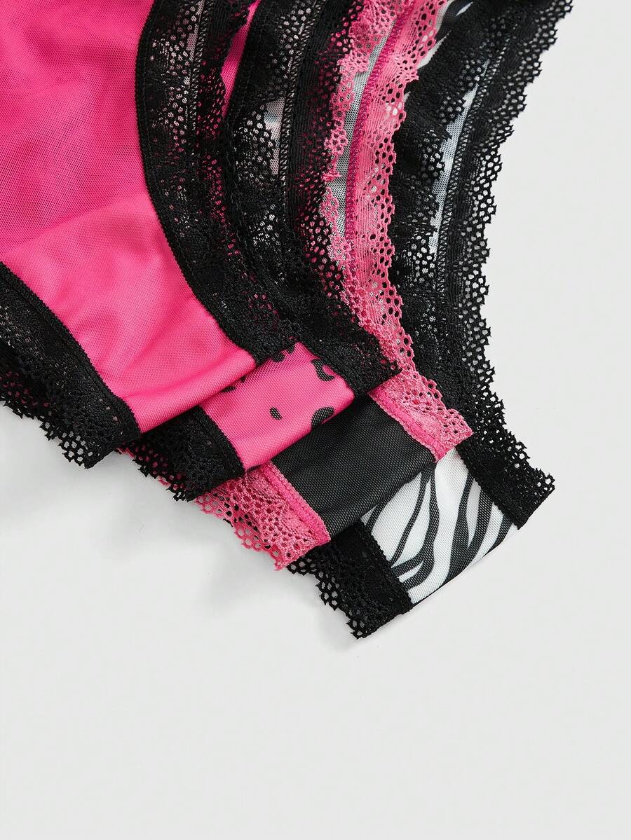 J-Fashion Set da 3 pezzi di perizomi a triangolo in stile Y2K, con blocchi di colore a motivo zebra e leopardo, con dettagli in pizzo e in rete