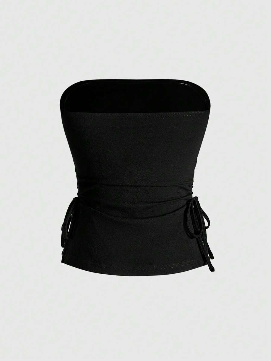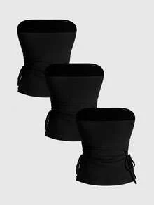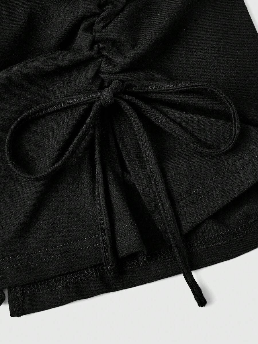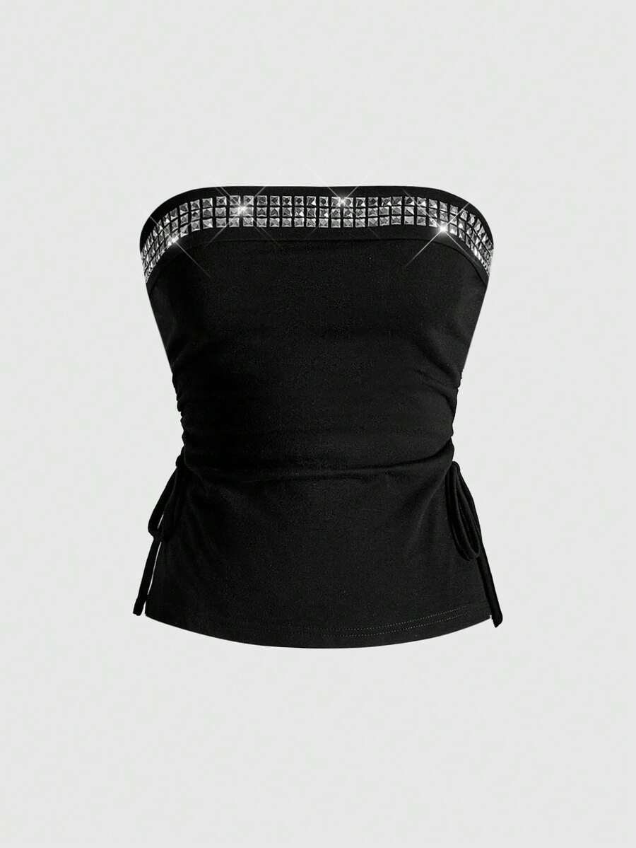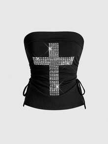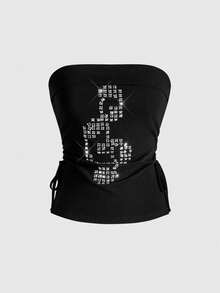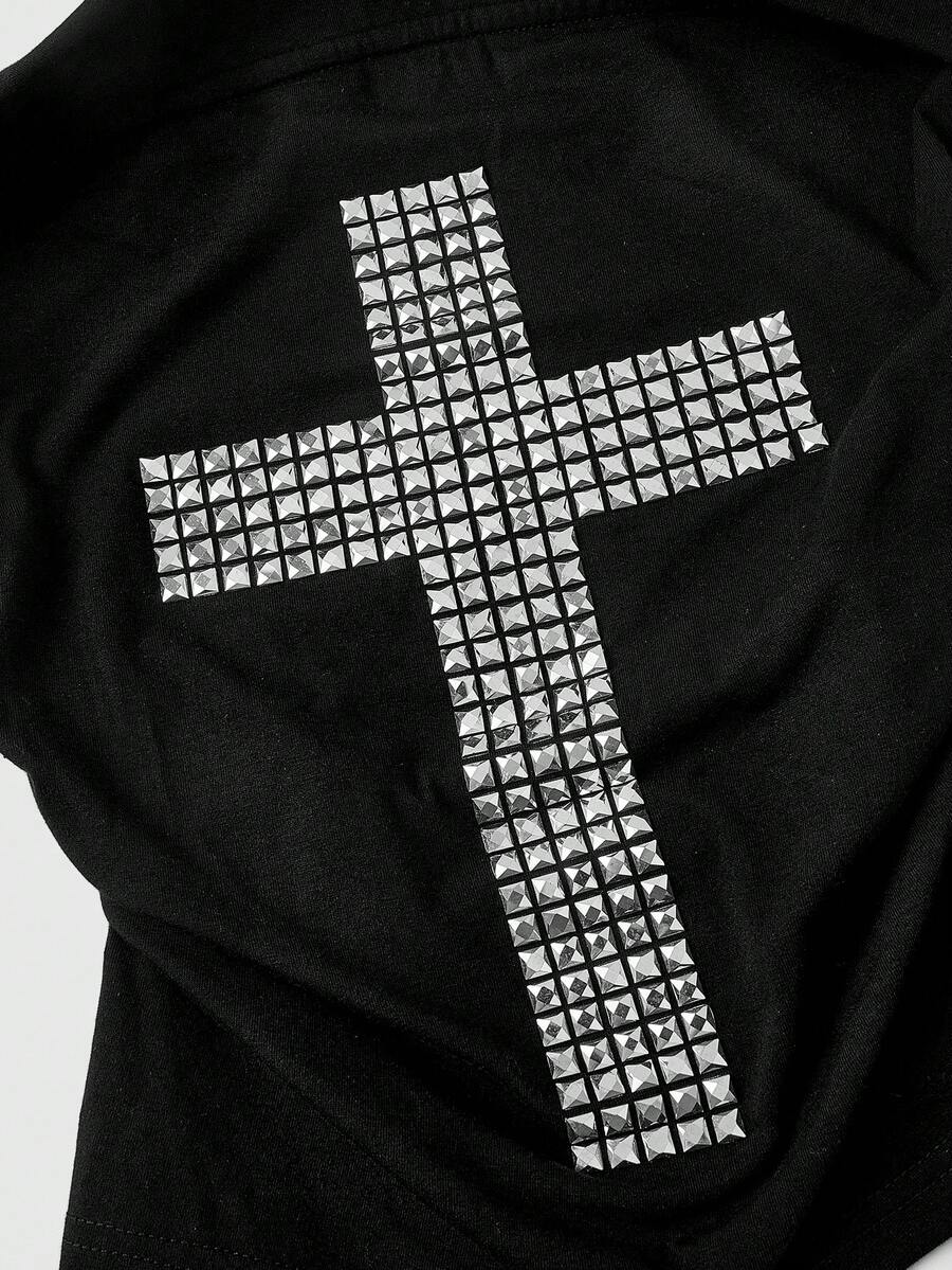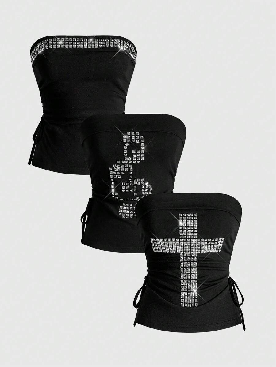 J-Fashion 3 pezzi Set di top da donna con incrocio, nota musicale, rivetti e decorazioni in strass, con collo alto, laccio e orlo spaccato, in stile Y2K