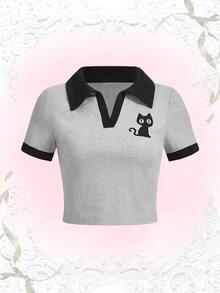J-Fashion Maglietta con grafica fumetto colletto a contrasto