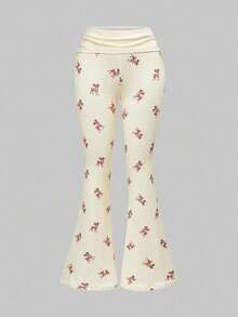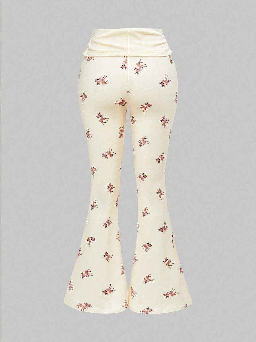 J-Fashion Blusa in pizzo ricamata con cervi abbinata a pantaloni a zampa con stampa di cervi, autunno/inverno