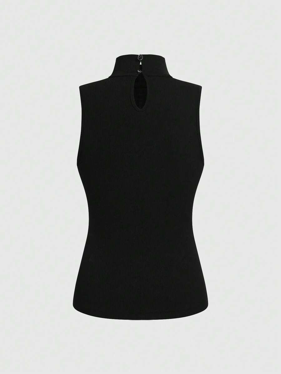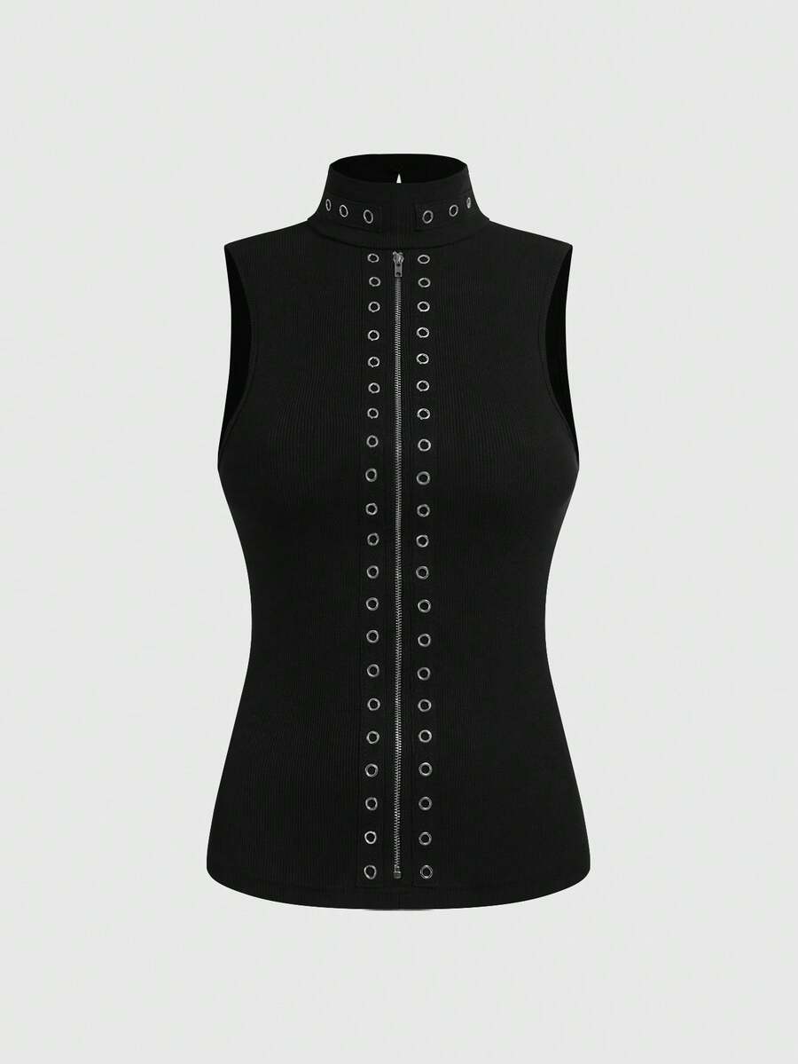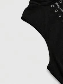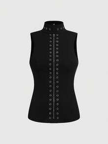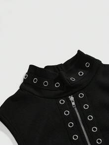 J-Fashion Top corto aderente lavorato a maglia con occhielli, stile punk street
