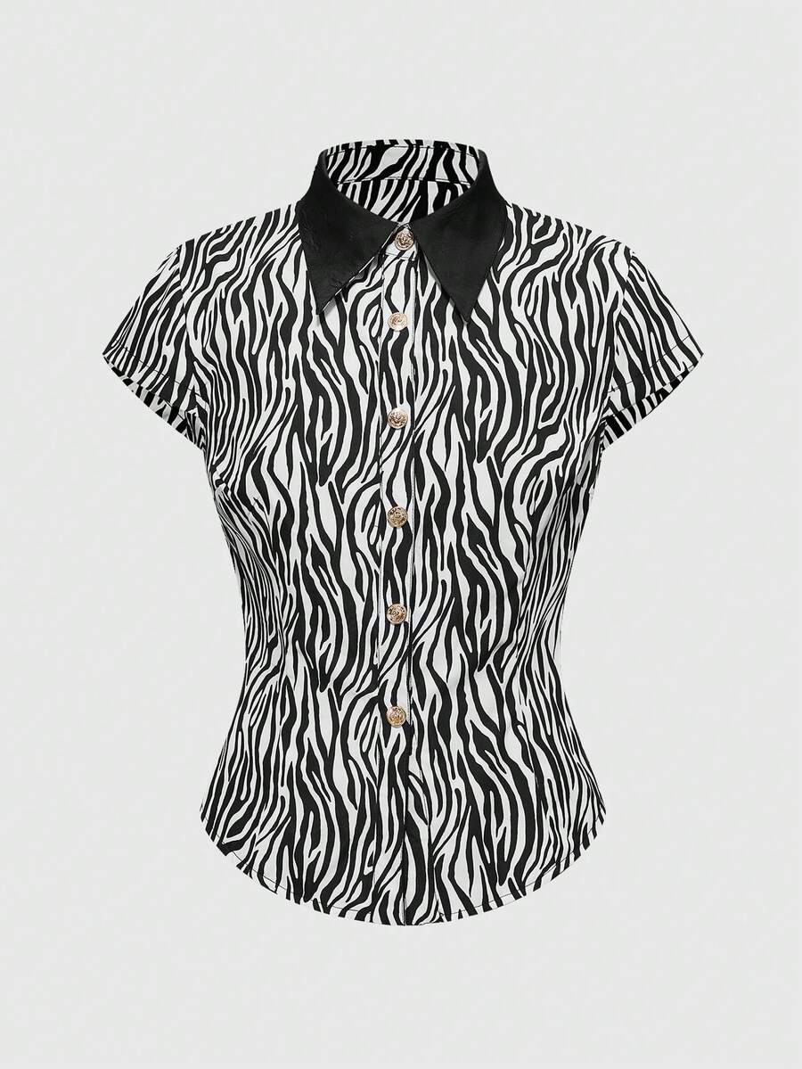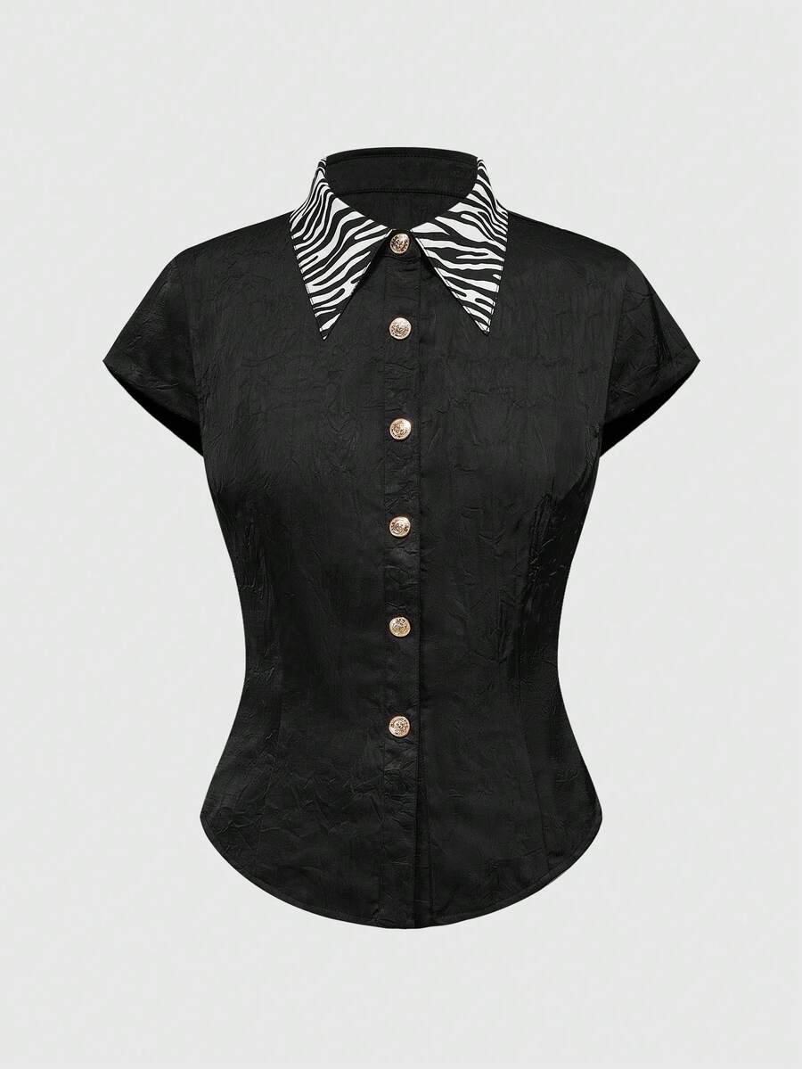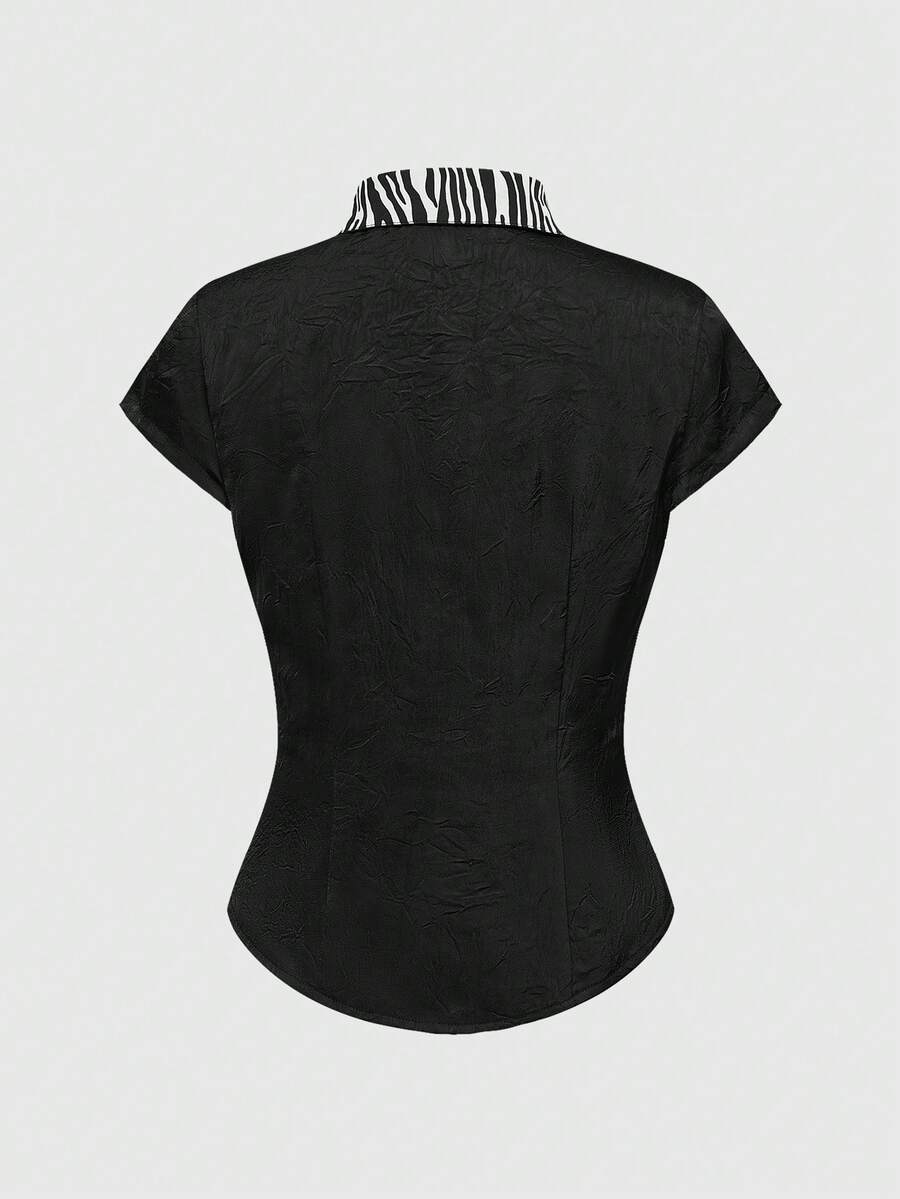 J-Fashion Camicia basic reversibile stile Harajuku Y2K con stampa leopardo nero