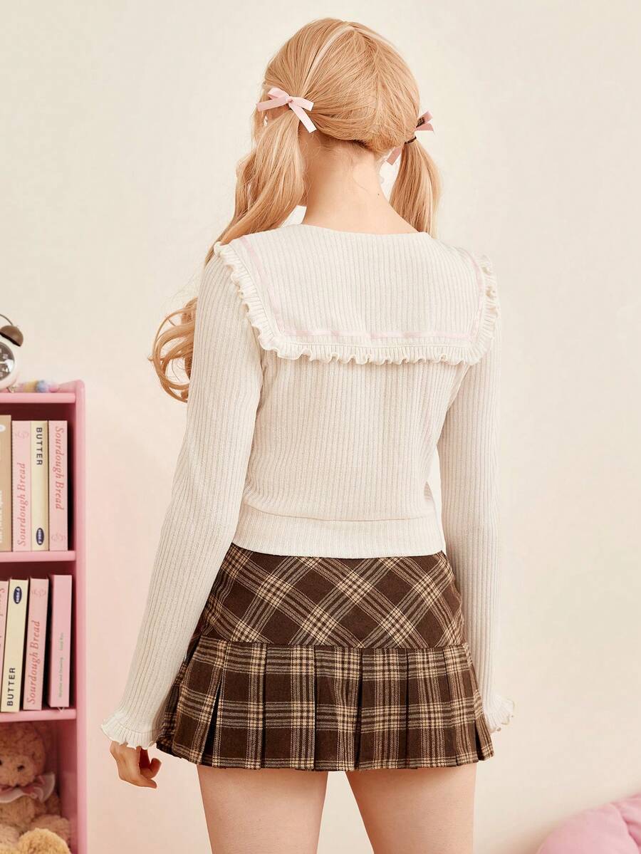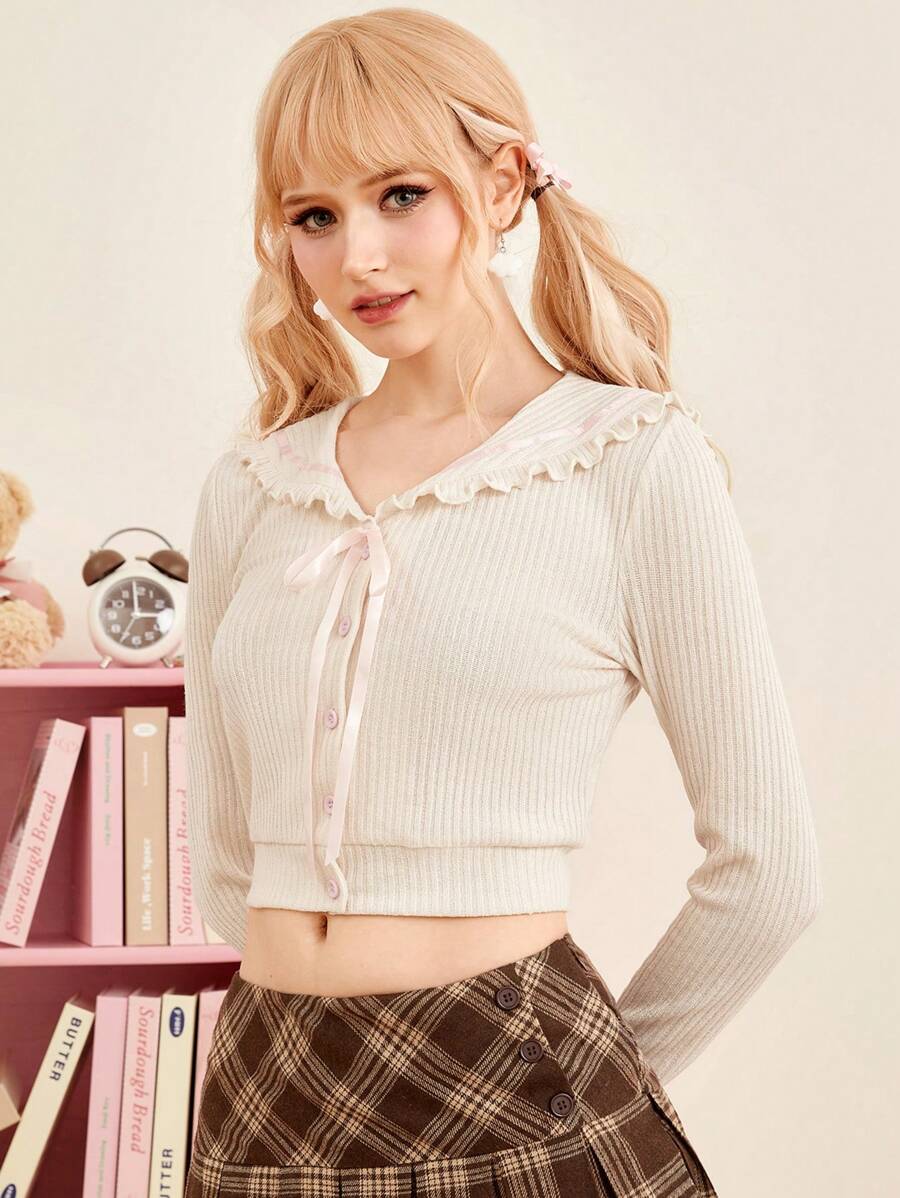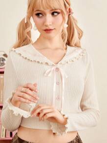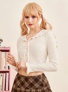 J-Fashion Maglietta corta collare da marinaio con nodo frontale