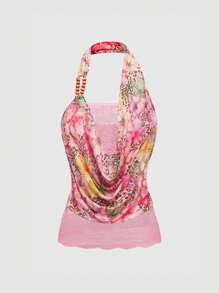 J-Fashion Top corto a costine, a incrocio, con stampa floreale in stile Hawaii vacanziero Y2K, 2 in 1