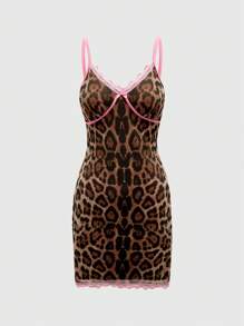J-Fashion Abito da donna con stampa leopardata, slim fit, con spalline sottili, dal vibe di girl hot