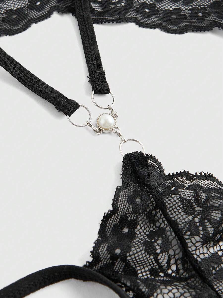 J-Fashion Slip donna con trasparenze e decorazioni in perle sintetiche, sexy e seducente