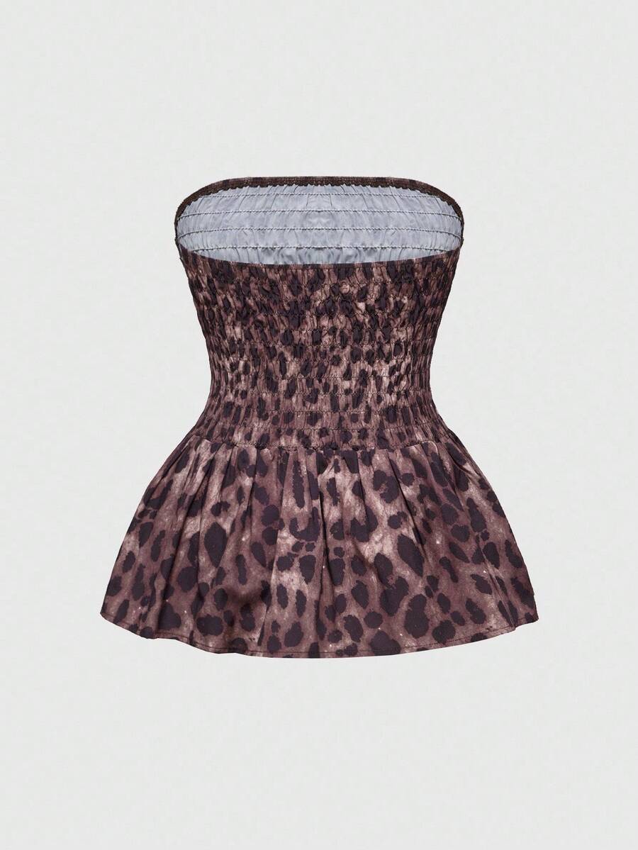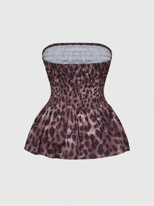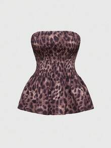 J-Fashion Top a fascia con volant e stampa leopardata da donna