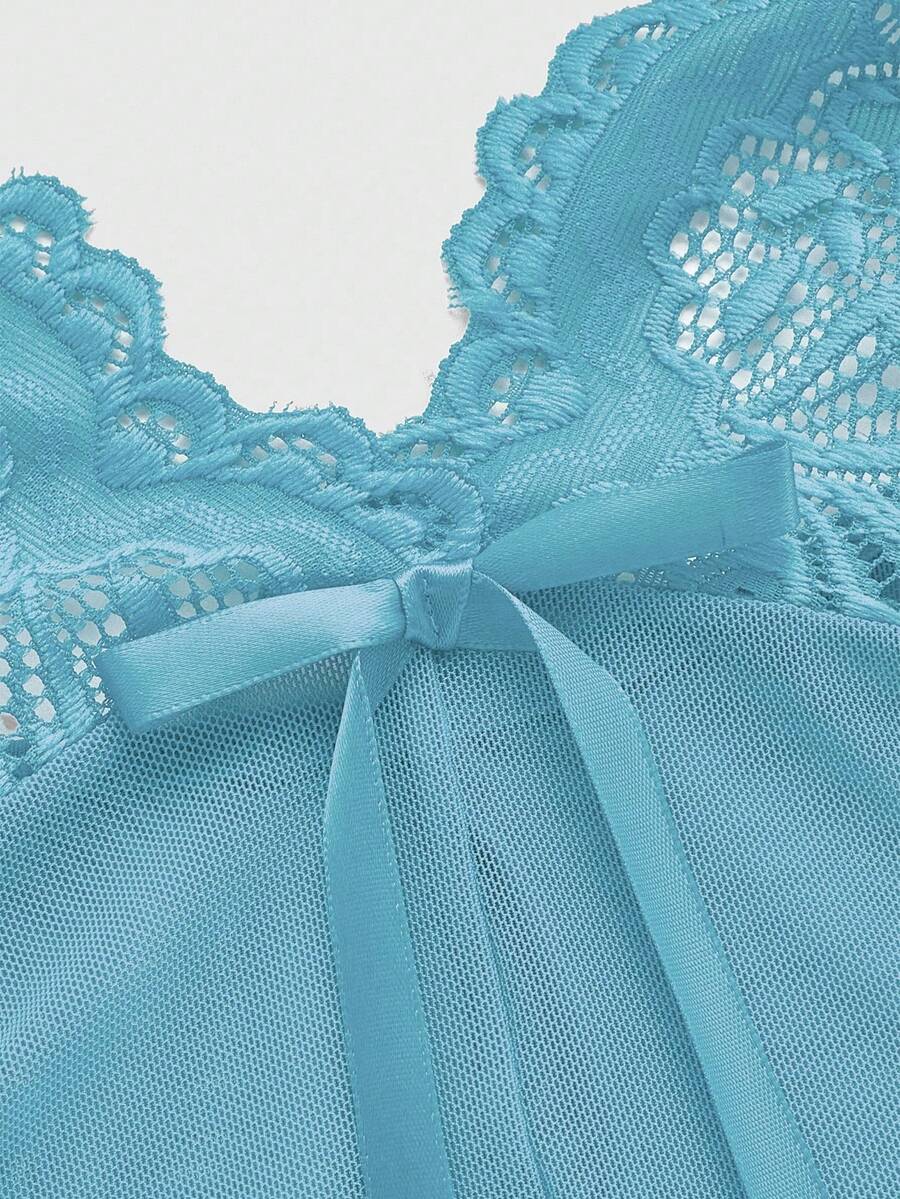 J-Fashion Set di abito trasparente con inserti in pizzo, in rete e fiocco in stile Y2K e d'avanguardia