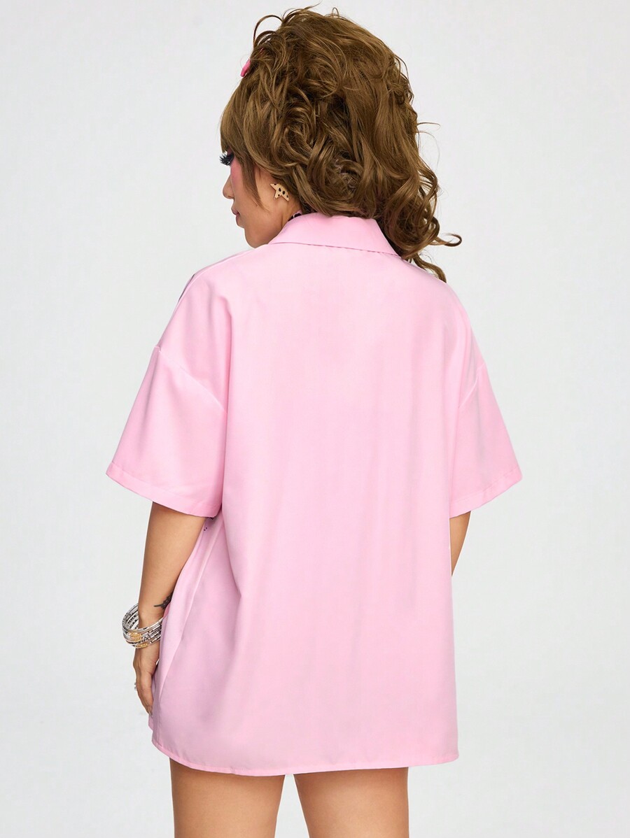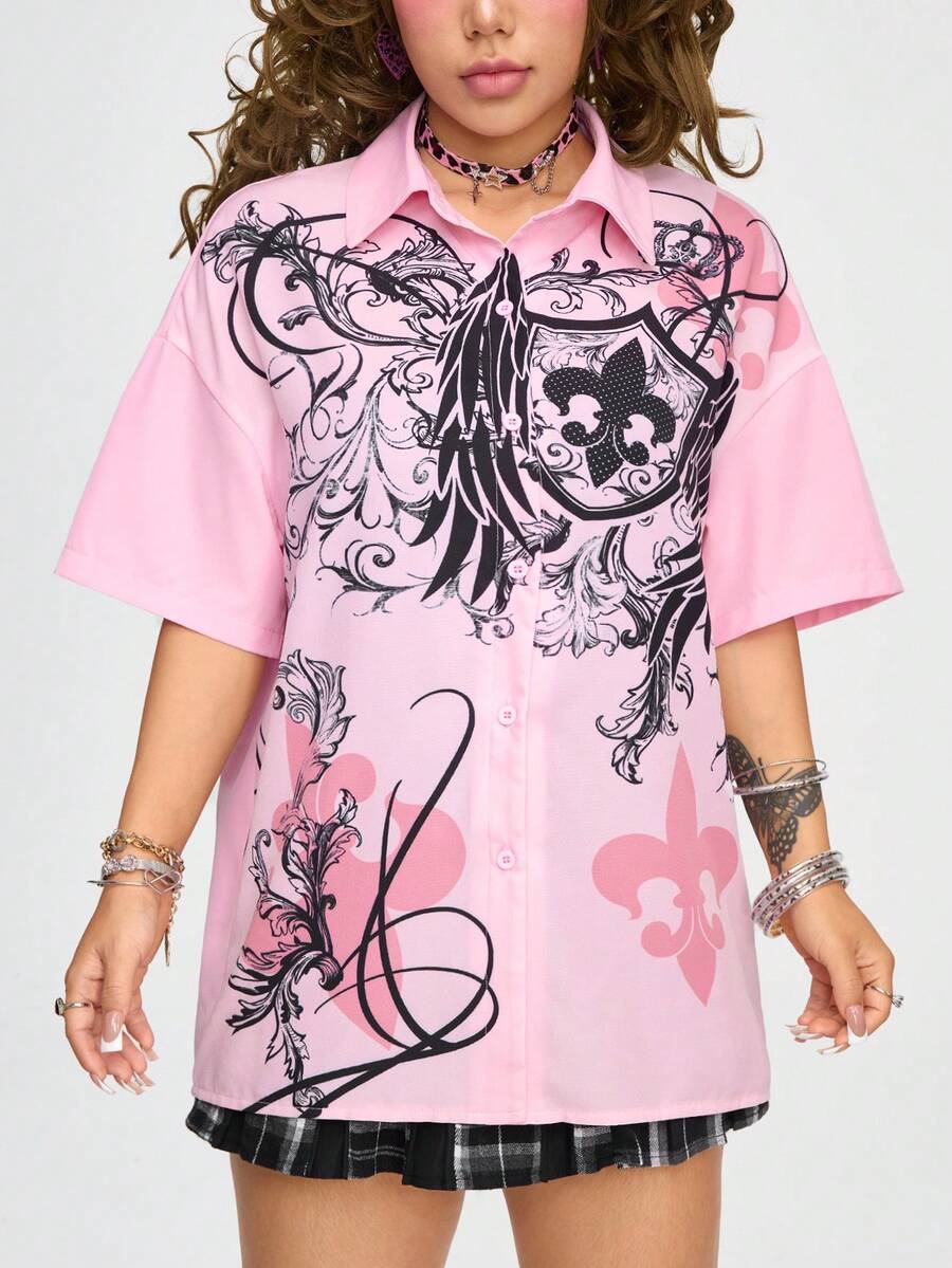 J-Fashion Camicia a manica corta da donna con stampa Y2K Campus Leisure Street Style