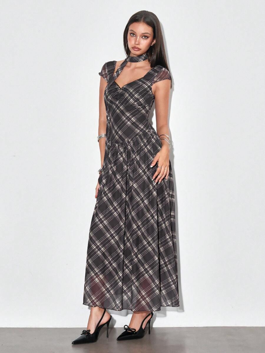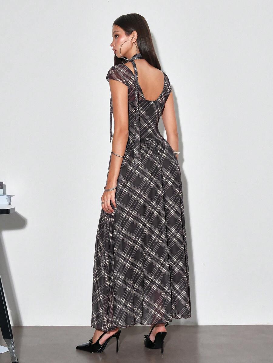 J-Fashion Vestito in rete con motivo a quadri carina stile coreano Y2K
