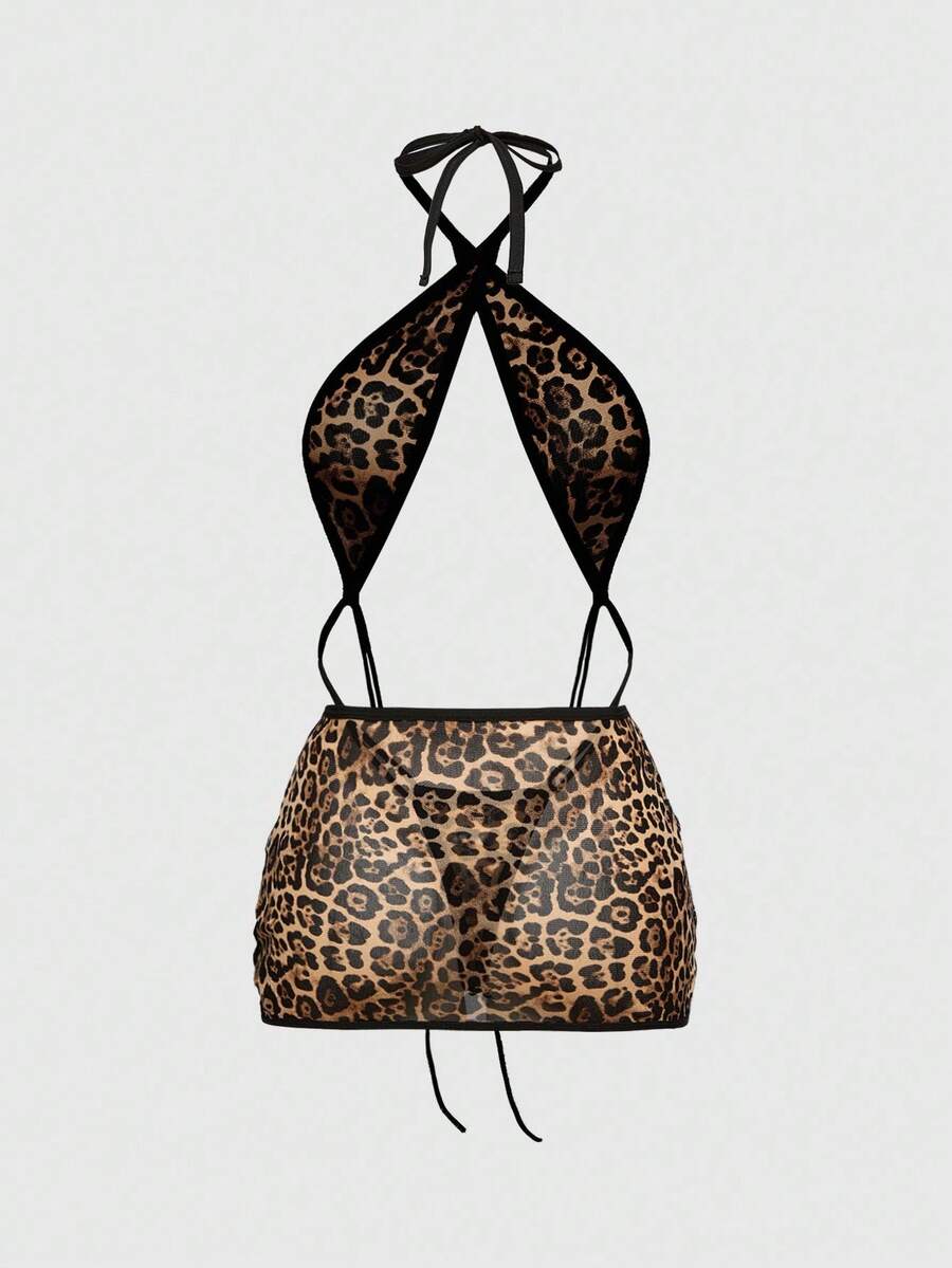 J-Fashion Set di lingerie sexy senza cuciture con stampa leopardata in stile Y2K, una sola parte