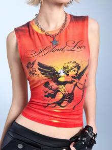 J-Fashion Top aderente da donna con maniche a angelo neon, doppio strato e orlo con frange, in stile Y2K