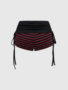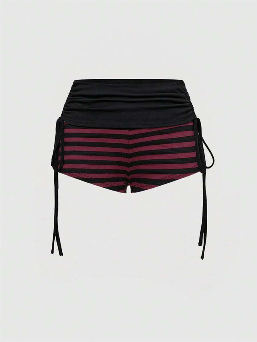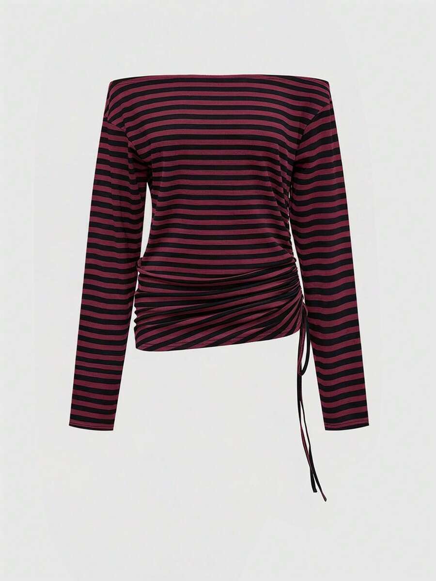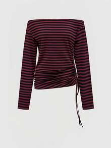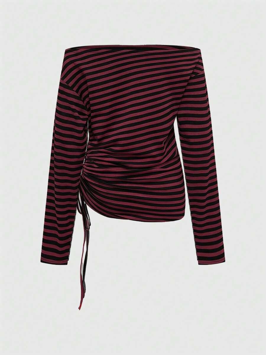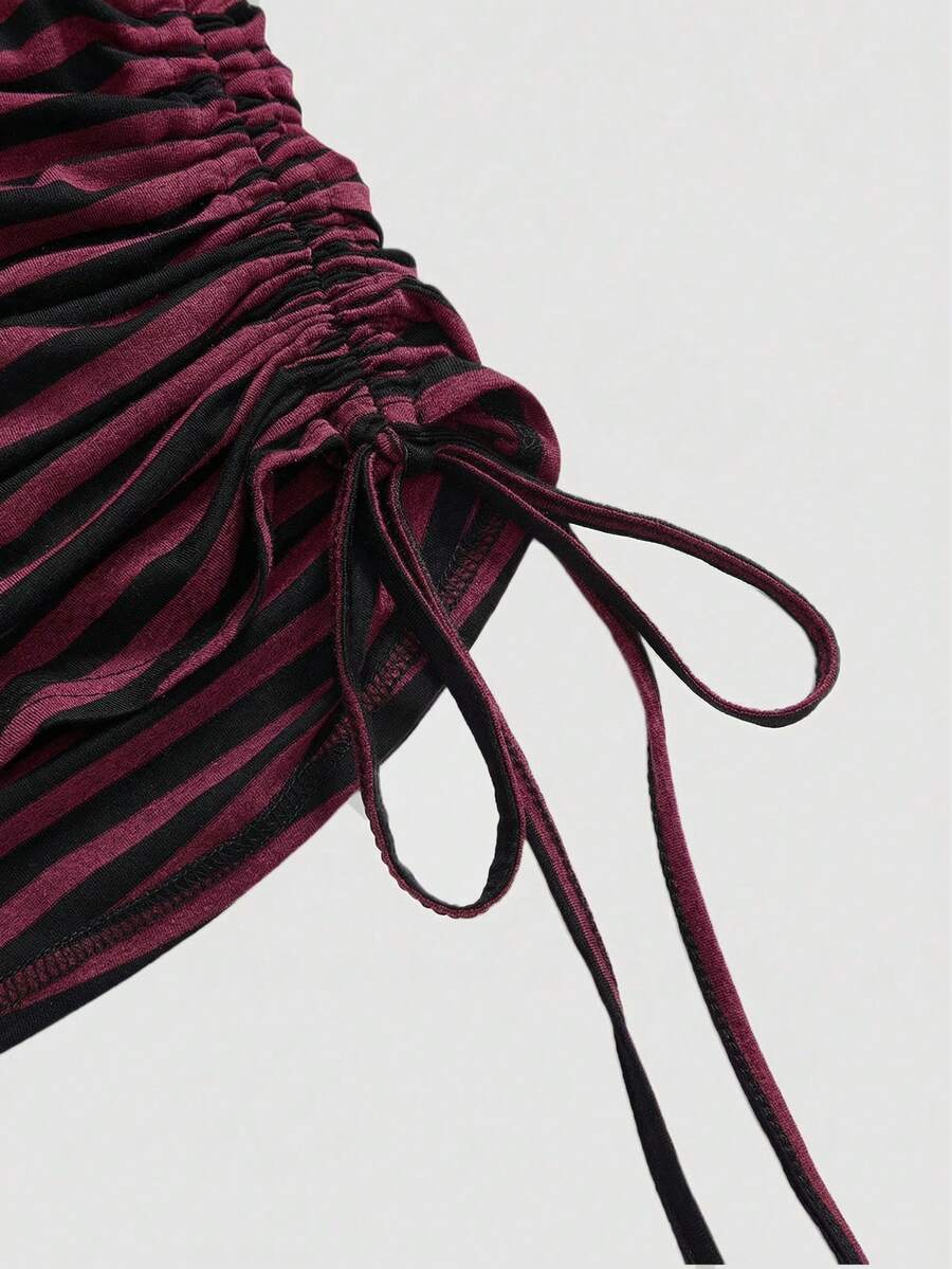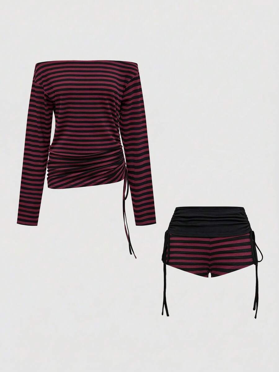 J-Fashion Completo da donna stile Y2K sexy con maniche a pipistrello a righe, arricciato e con laccetti, scollo spalle scoperte