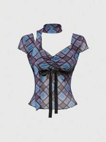 J-Fashion Scopata a T da donna con fiocco decorato e stile Y2K