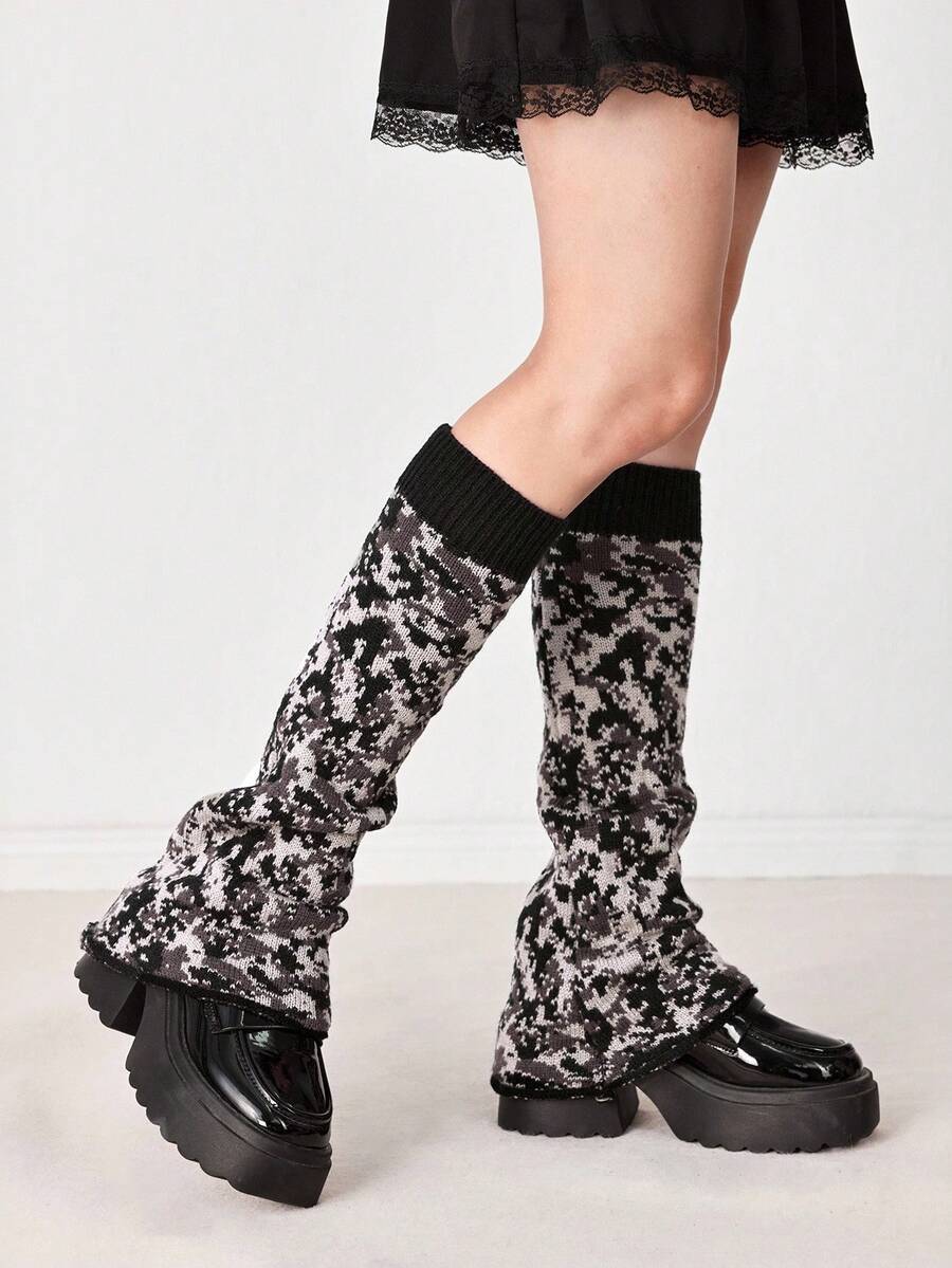Kawaii 1 Paio di Gambali Larghi in Stile Gotico con Motivo Mimetico