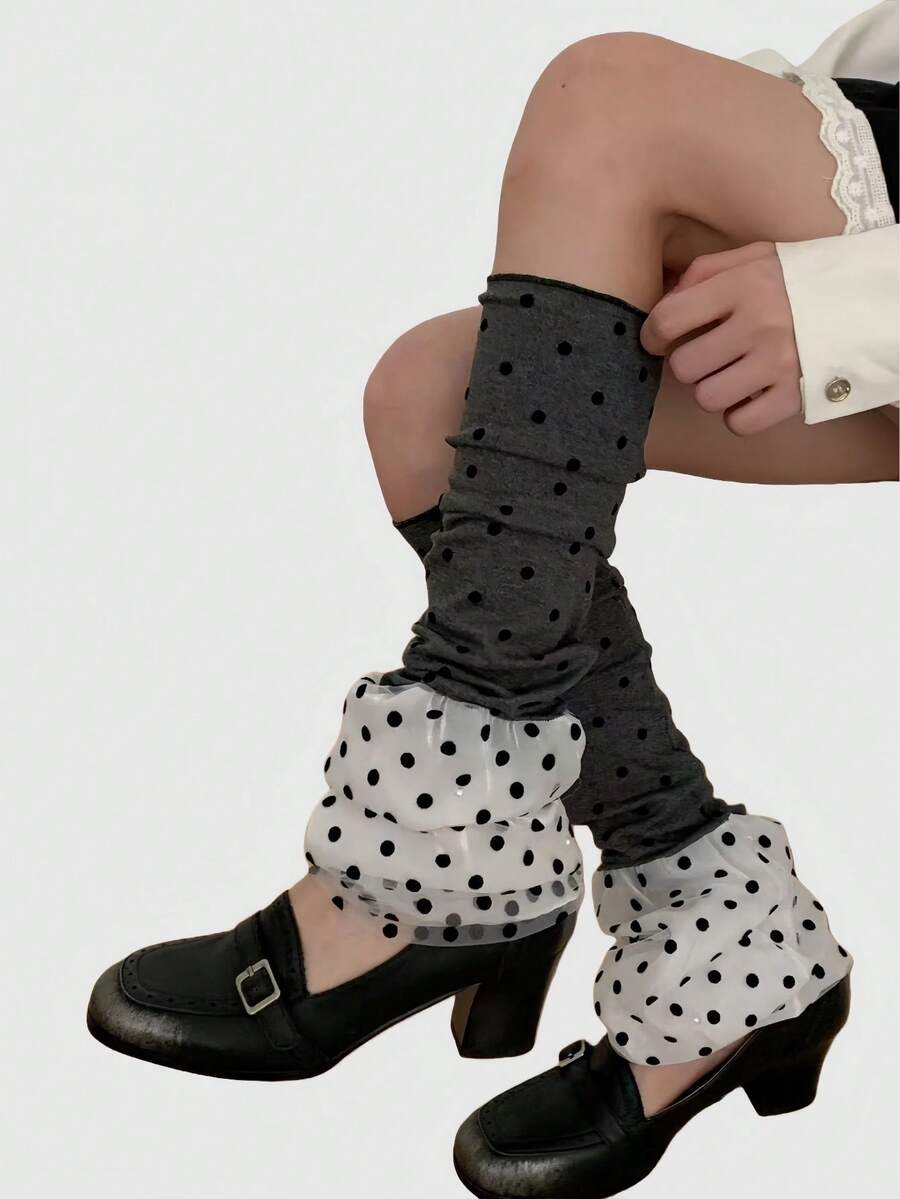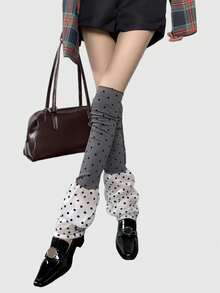 Kawaii 1 Coppia di Scaldamuscoli a Pois Grigi e Bianchi Estensibili a Strati, Scaldamuscoli Minimalisti alla Moda da Ragazza del Millennio Adatti per Uso Quotidiano, Scuola, Appuntamenti, Feste e Altre Occasioni