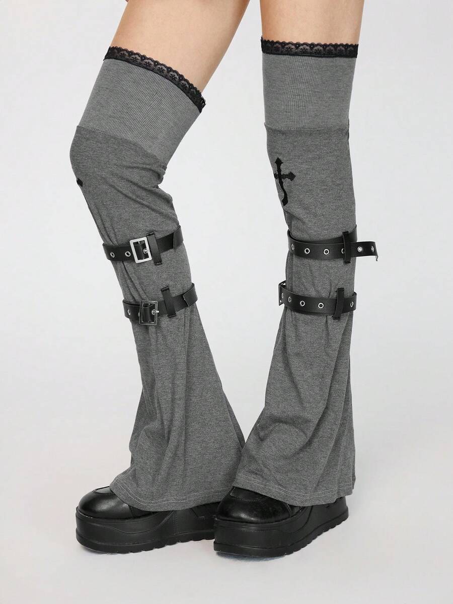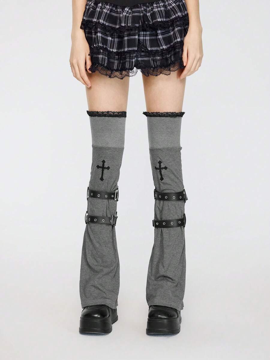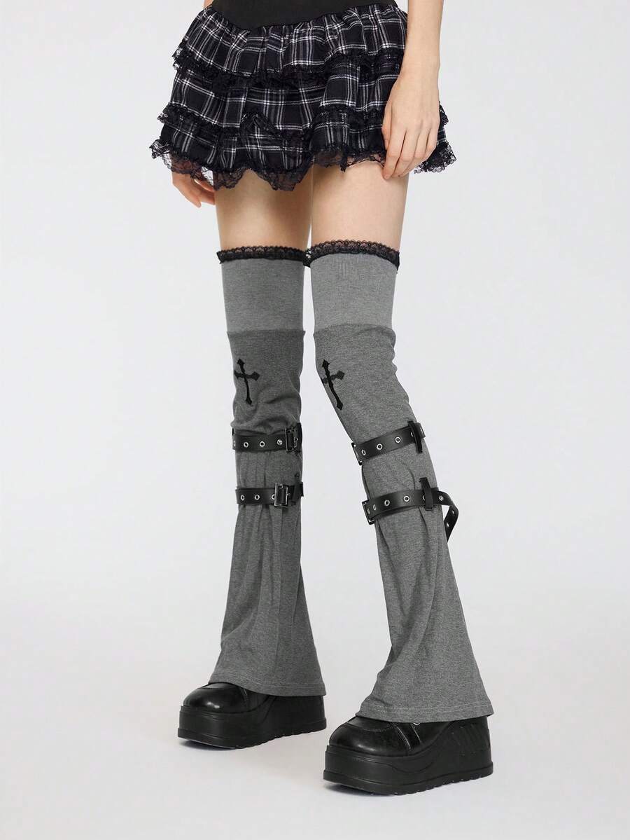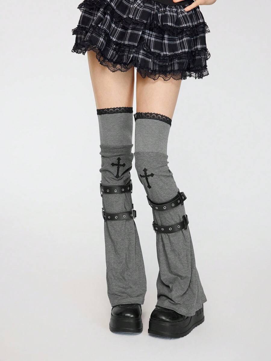 Kawaii Un paio di copri-ginocchio in maglia punk, design di nicchia, ricamo a croce, copristivali in pizzo, copertura per calze impilate con cinturini per primavera e autunno, non si sfilacciano facilmente, copertura per gambe al ginocchio