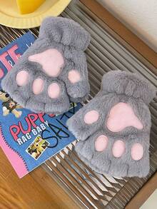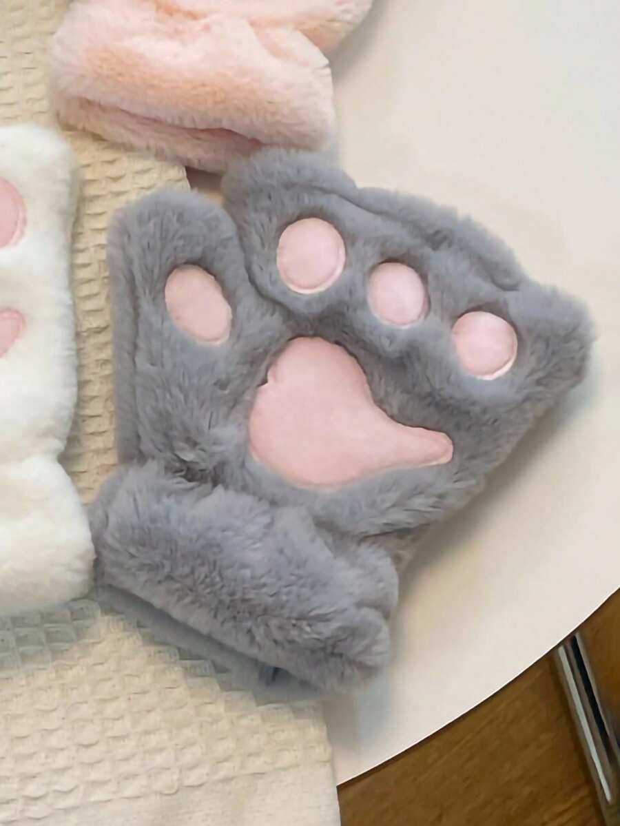 Kawaii 1 Paio di guanti senza dita con zampe di gatto in pelliccia, adatti per uso quotidiano