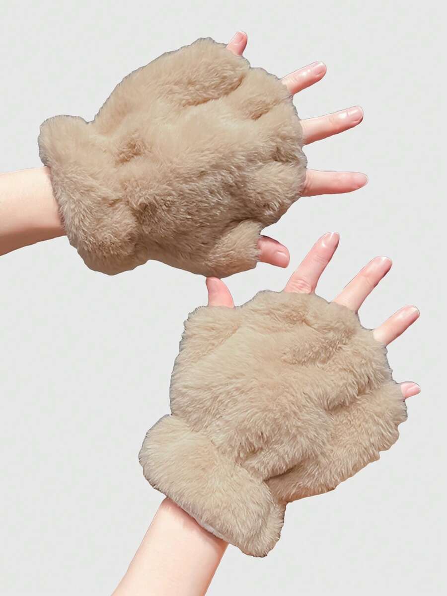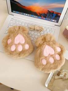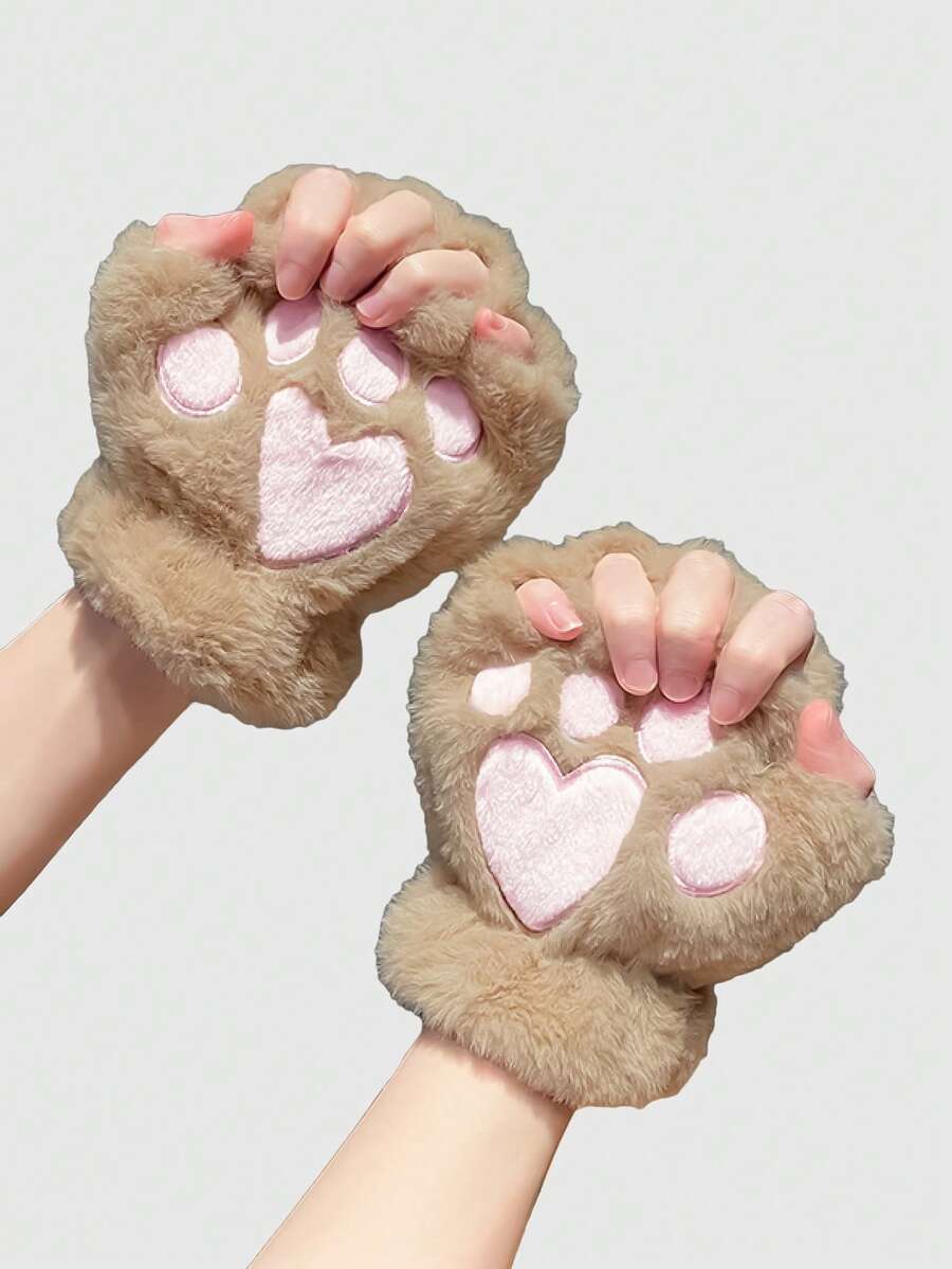 Kawaii 1 Paio di guanti senza dita con zampe di gatto in pelliccia, adatti per uso quotidiano