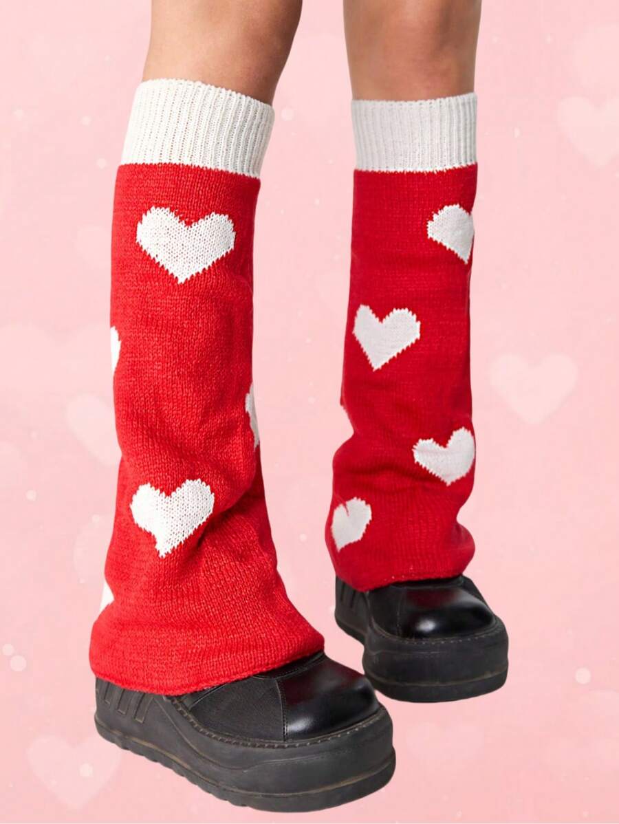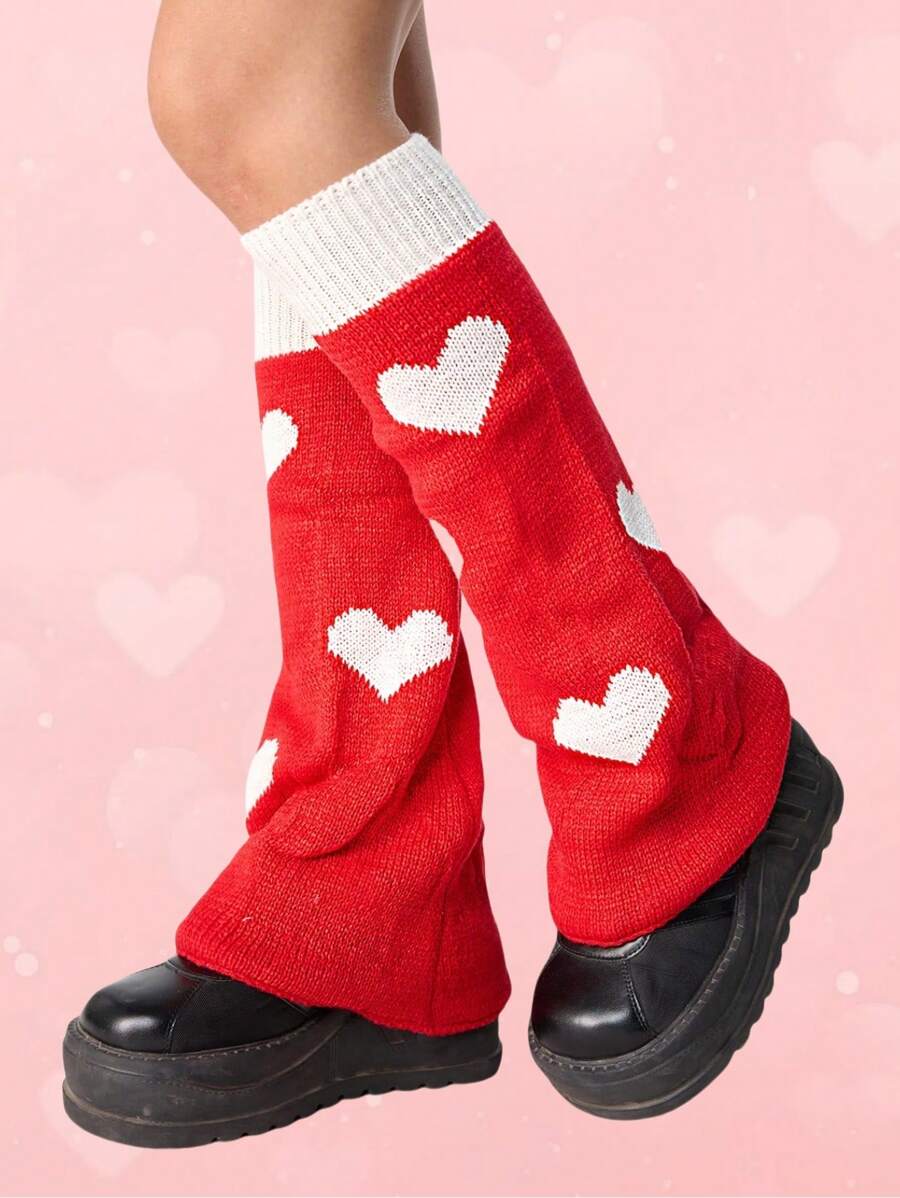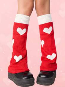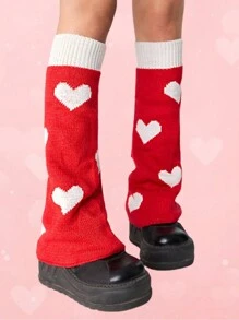 Kawaii 1 Paio di Scaldamuscoli Reversibili con Motivo a Cuori per la Festa di San Valentino