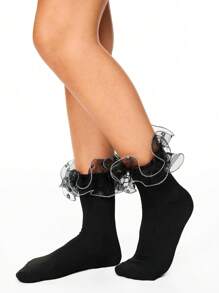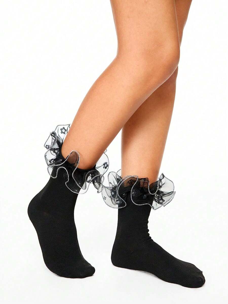 Kawaii 1 paio di calze a metà polpaccio reversibili di colore tinta unita con bordo di pizzo per tutte le stagioni per donne