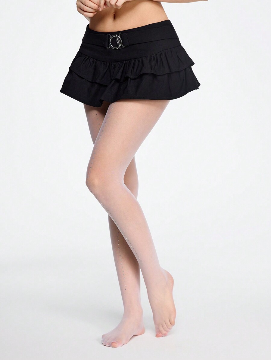 Kawaii 1 paio di calze da donna con strisce bianche e decorazioni di strass, adatte per tutte le stagioni