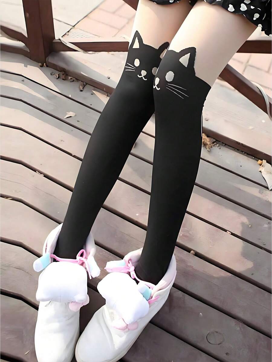 Kawaii Donna 1 paio Collant simpatico cartone animato con motivo gatto