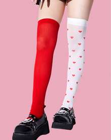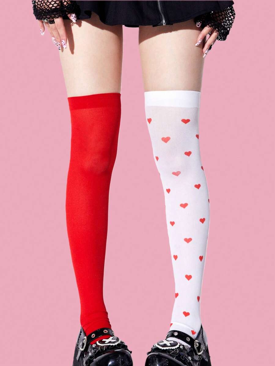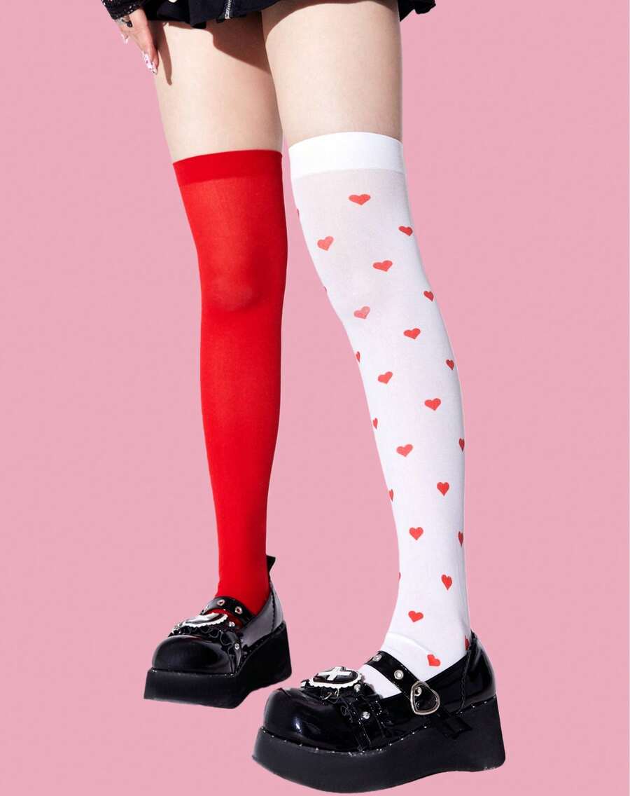 Kawaii 1 Coppia Di Calze Sopra Il Ginocchio Da Donna Con Motivo A Cuori E Quadri