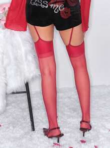 Kawaii 1 coppia di calze autoreggenti rosse per il giorno di San Valentino da donna, adatte per tutte le stagioni