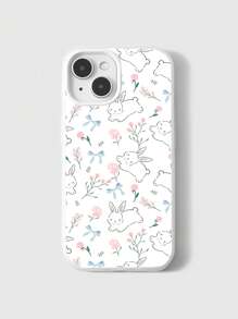 Kawaii 1 pezzo Custodia per telefono con coniglio bianco carino, decorata con fiocchi, ciliegie e mele, compatibile con iPhone 11 12 13 14 15 Pro Max 16