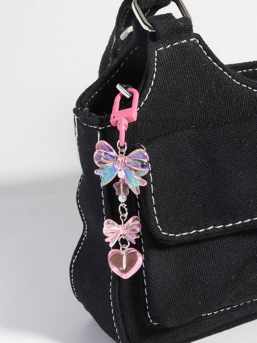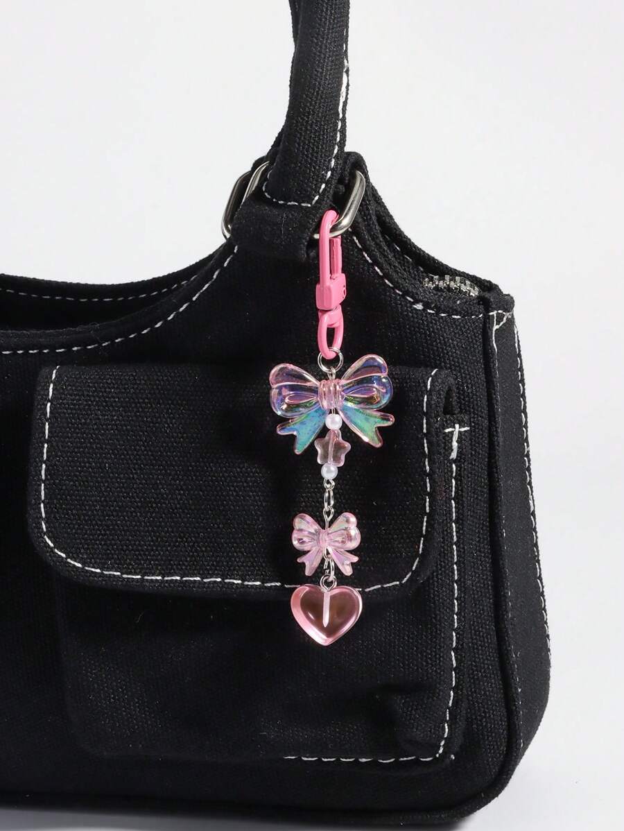 Kawaii 1 pezzo Ciondolo carino a forma di cuore con fiocco rosa in stile Y2K