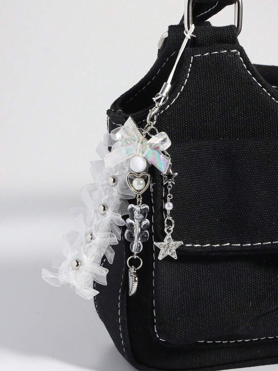 Kawaii 1 pezzo Ciondolo carino Y2K in rete bianca a forma di orso con stella, accessorio per borsa o pendente per telefono