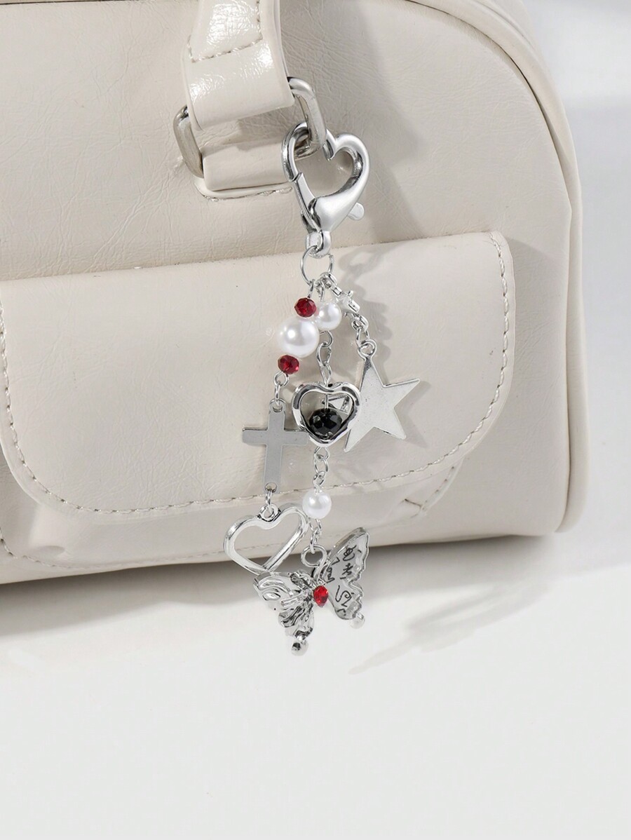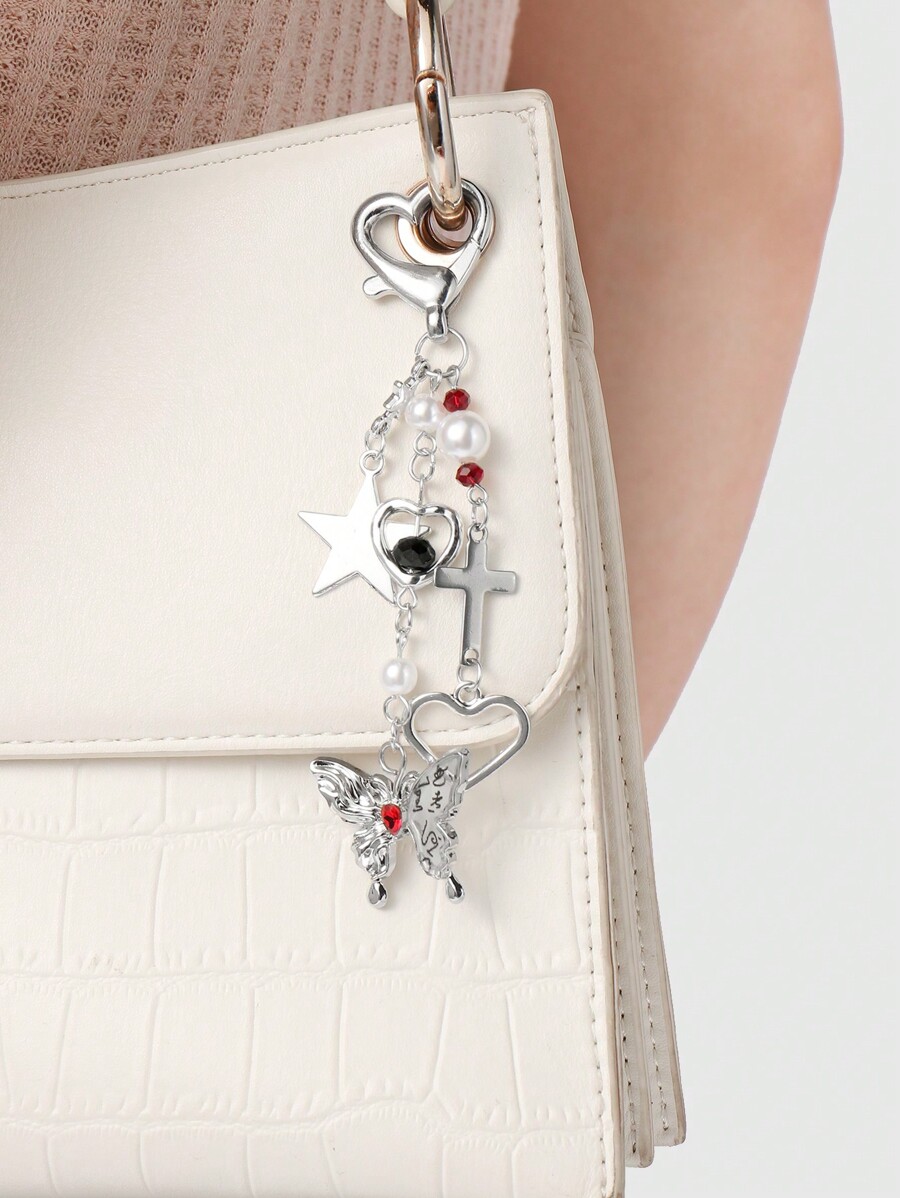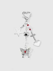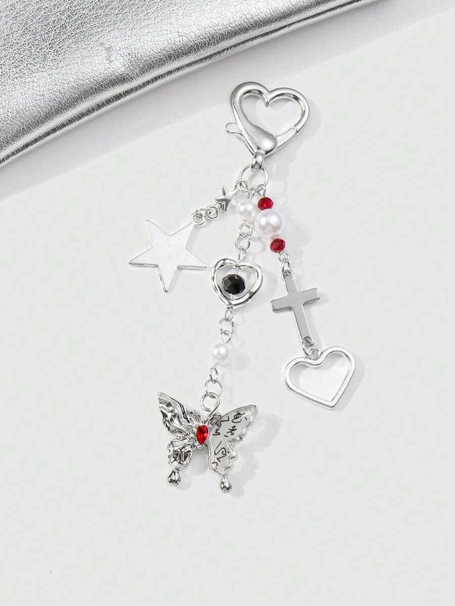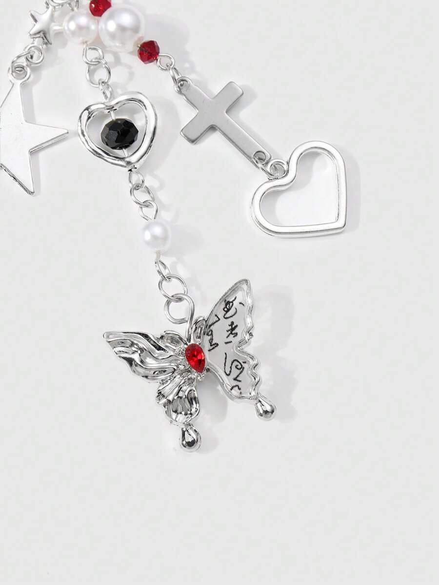 Kawaii 1 pezzo Ciondolo a forma di farfalla 3D con catena a stella, perle false e cuore cavo, in stile college e casual, elegante, adatto come accessorio da donna per uso quotidiano e come regalo