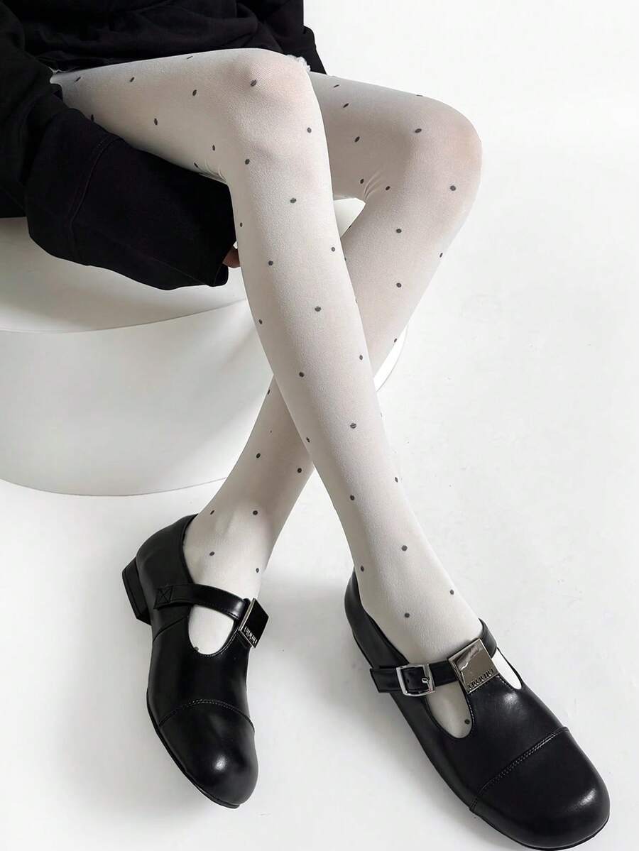 Kawaii 1 pezzo Calze velate bianche con pois alla moda, collant/calze/leggings estivi sottili modellanti per le gambe delle donne