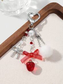 Kawaii 1 pezzo Stile Ins Ciondolo portachiavi in resina delicato e minimalista con stella cava, fiocco e finta perla a forma di fragola, versatile per ragazze e donne per uso quotidiano, regalo ideale