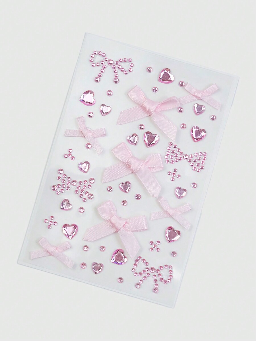Kawaii 1 pezzo Adesivo decorativo a forma di cuore con pizzo, fiocco e strass