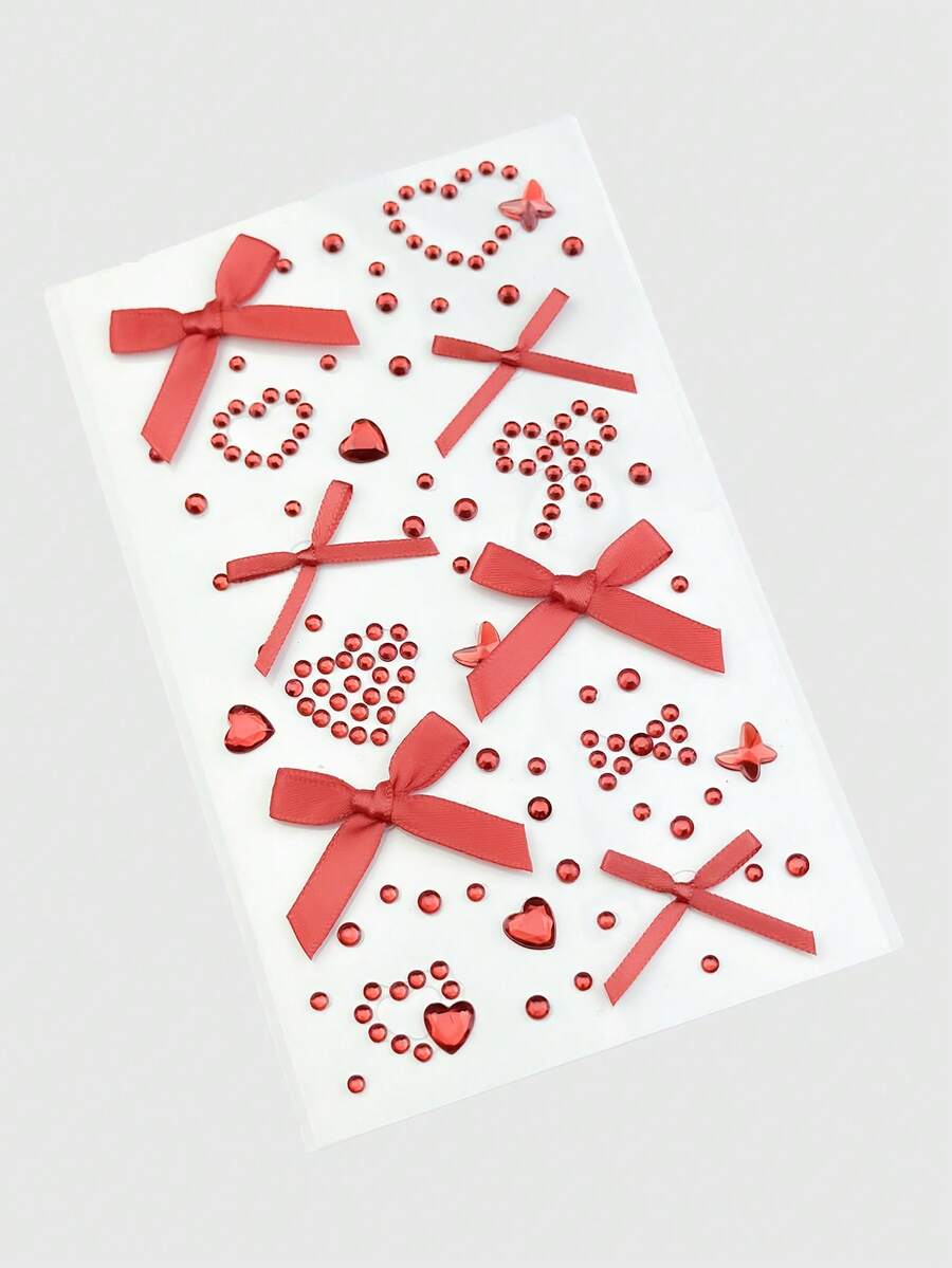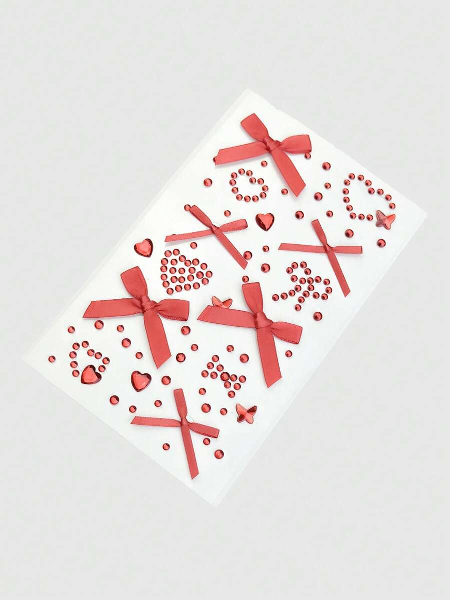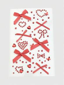 Kawaii 1 pezzo Adesivi gioiello per il viso con fiocco in pizzo, cuore, stella, fiocco, glitter a forma di diamante