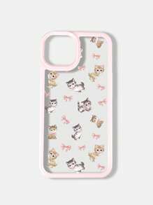 Kawaii 1 pezzo Custodia per telefono con mela compatibile con iPhone 11 12 13 14 15 Pro Max, con motivo Carino Gatto Rosa e Fiocco
