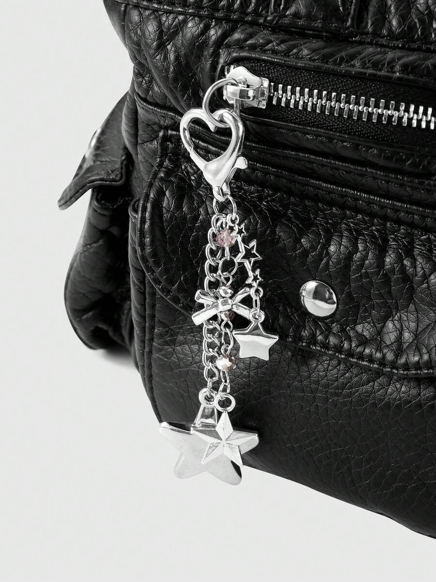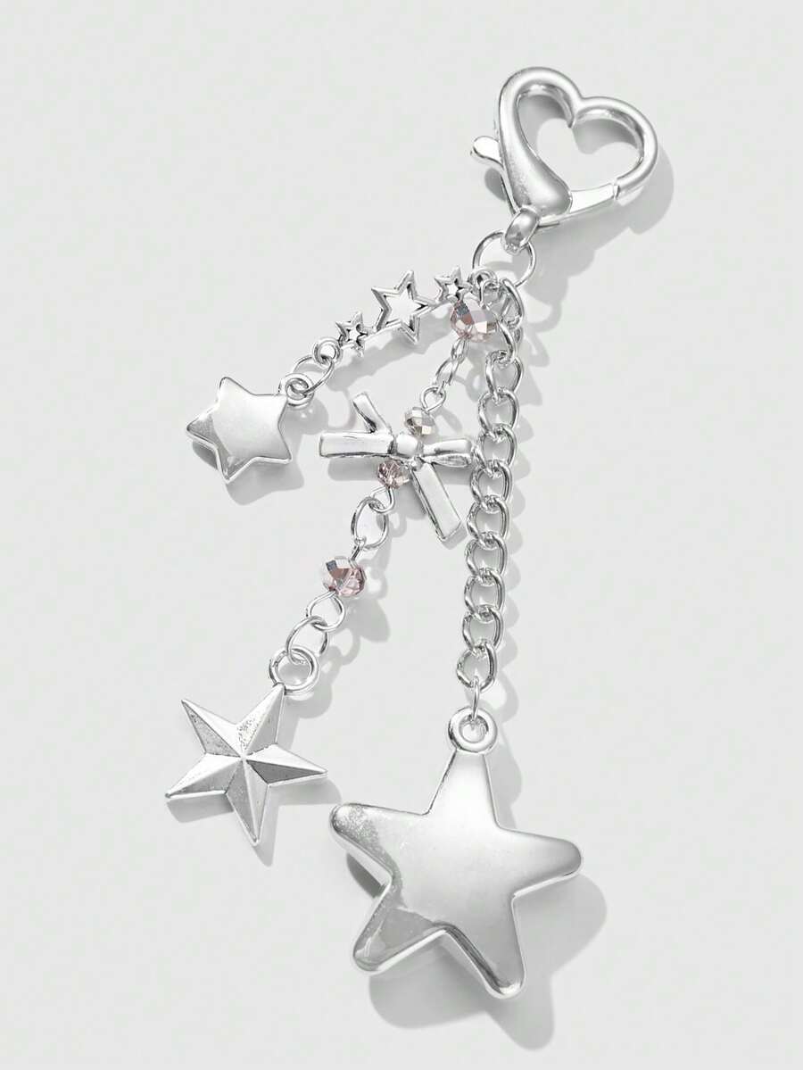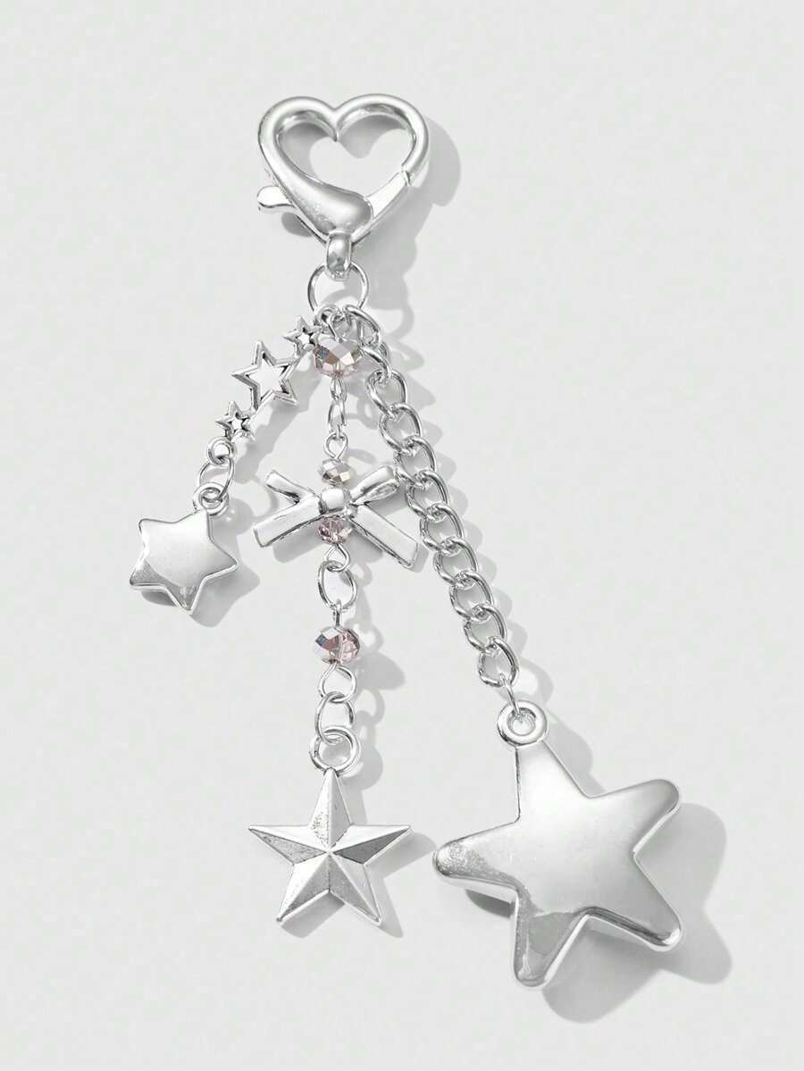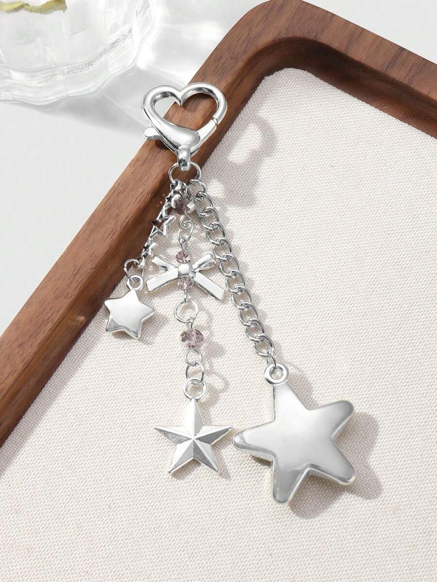 Kawaii 1 pezzo Ciondolo a forma di stella con strass argentati e perle, accessorio per borsa o portachiavi, regalo semplice ed elegante per le donne