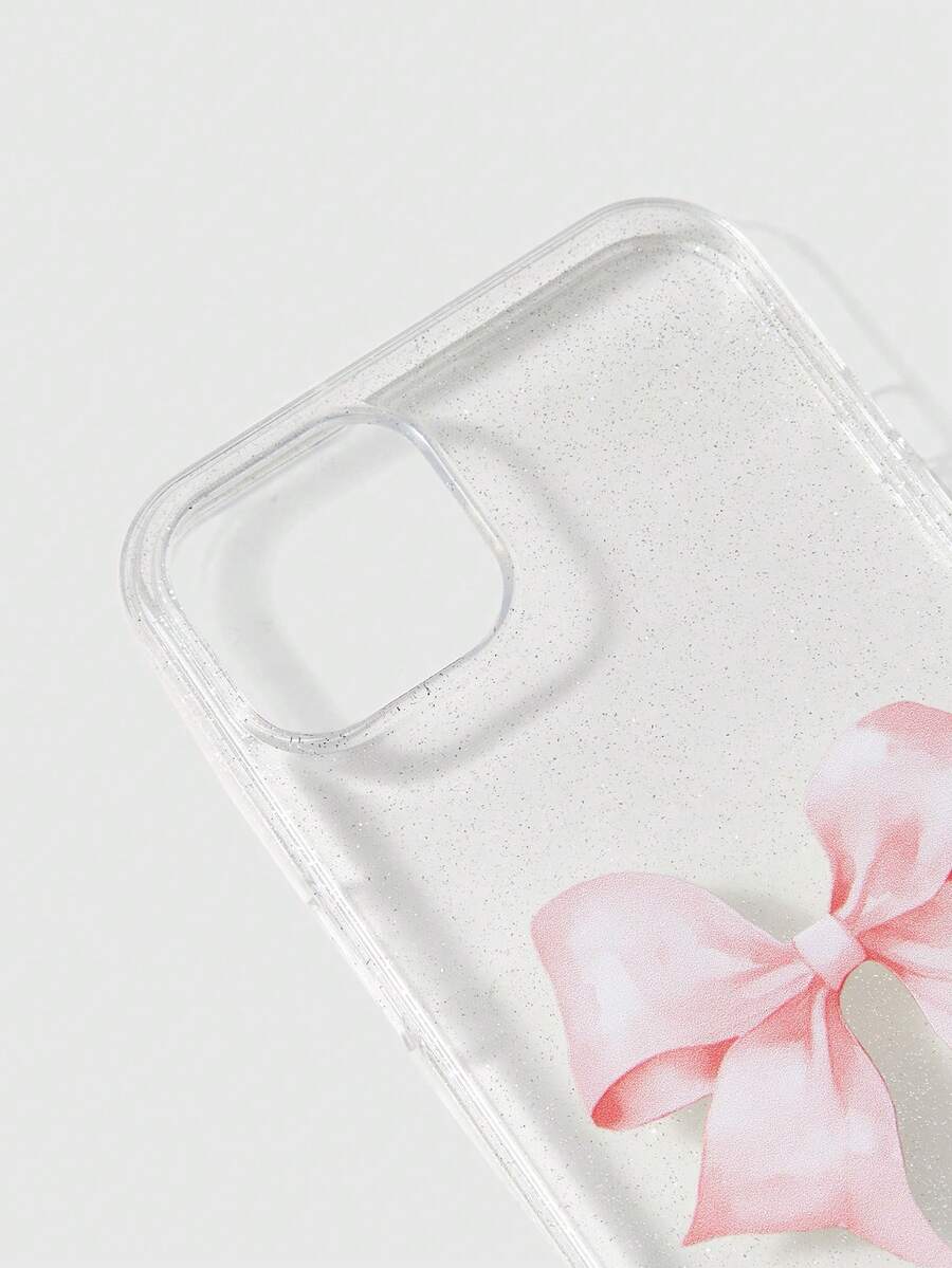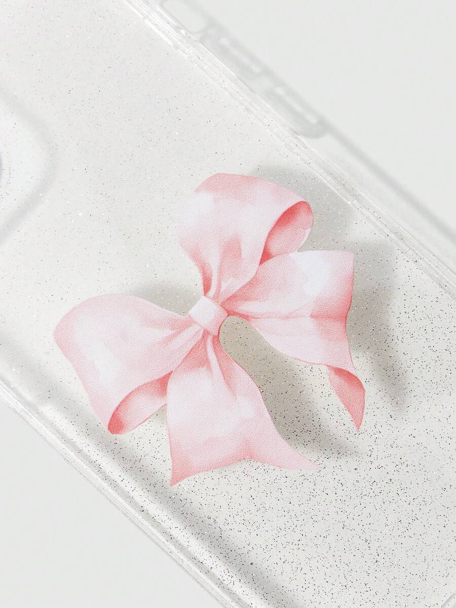 Kawaii 1 pezzo Custodia per telefono trasparente scintillante con fiocco rosa compatibile con Apple Iphone 11 12 13 14 15 Pro Max
