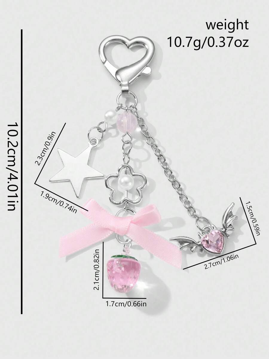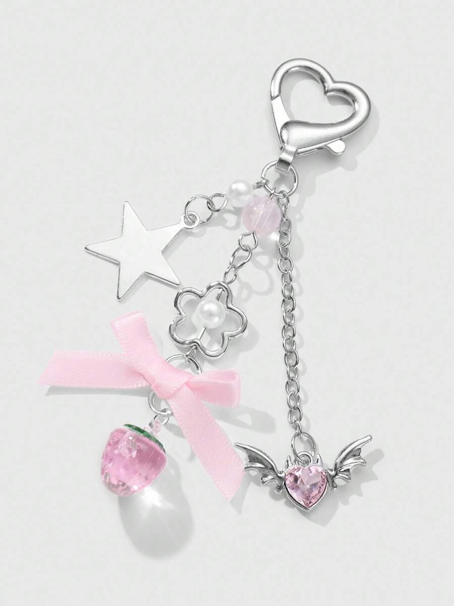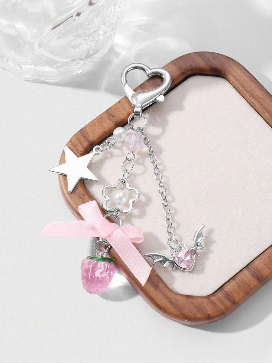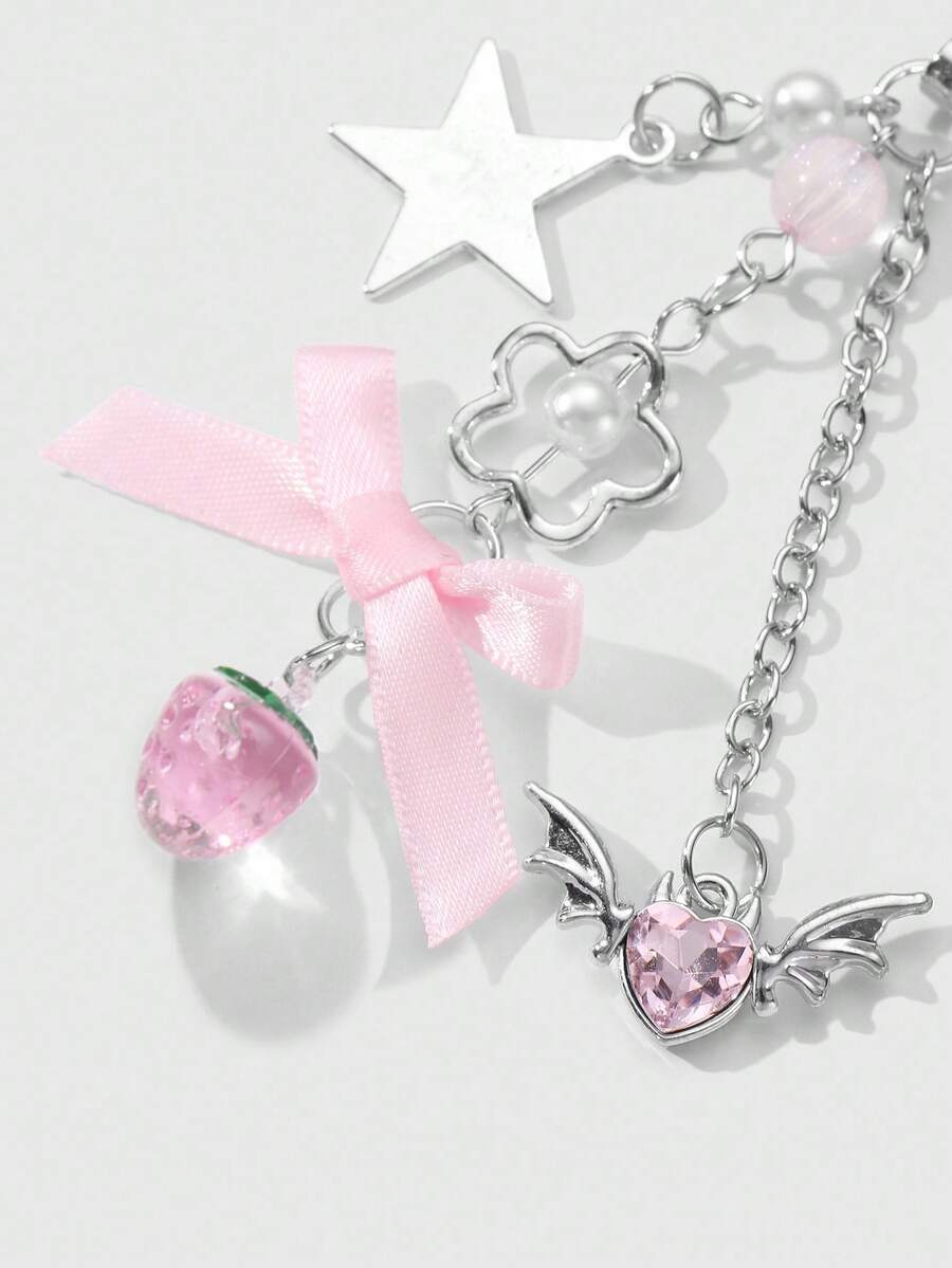 Kawaii 1 Pezzo Collana alla moda e versatile con ciondolo in argento, decorazioni con perla, cristallo, stelle, ali, cuore, fiore, fiocco, fragola, adatto per l'uso quotidiano delle donne e ragazze o come regalo per festival