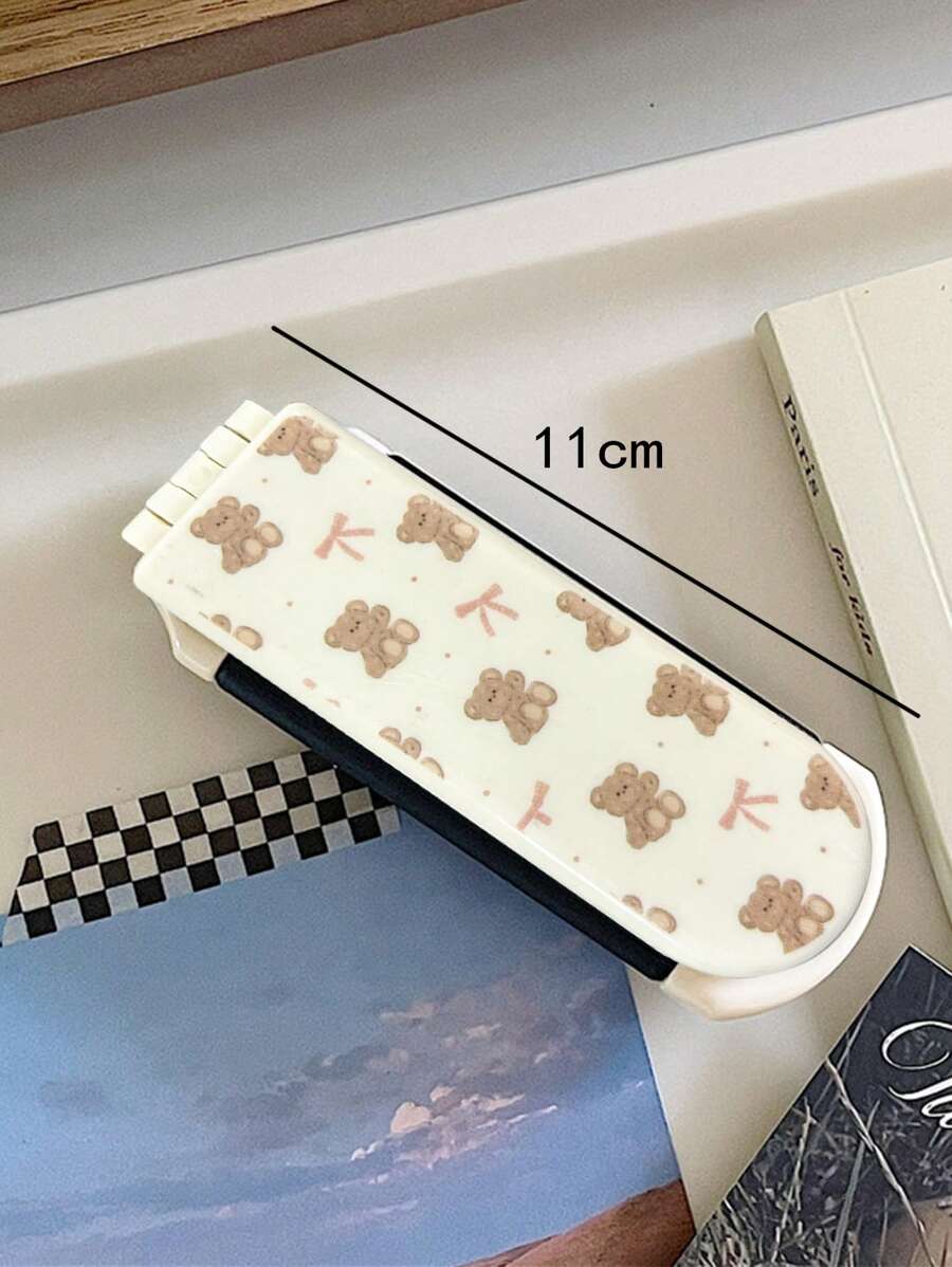 Kawaii 1 pezzo Pettine cuscinetto ad aria pieghevole con stampa di orsacchiotto e fiocco e specchio (posizione del motivo casuale)