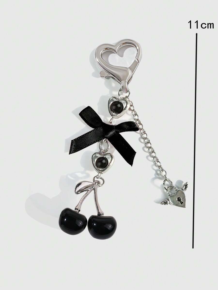 Kawaii 1 pezzo Portachiavi a ciondolo con cigliegia rossa e trasparente, stile bohémien, adatto per San Valentino